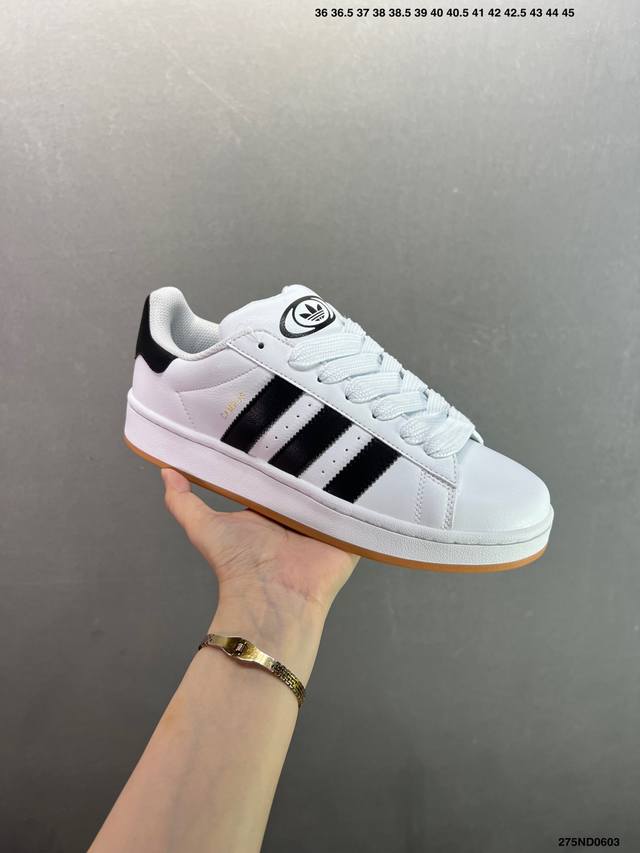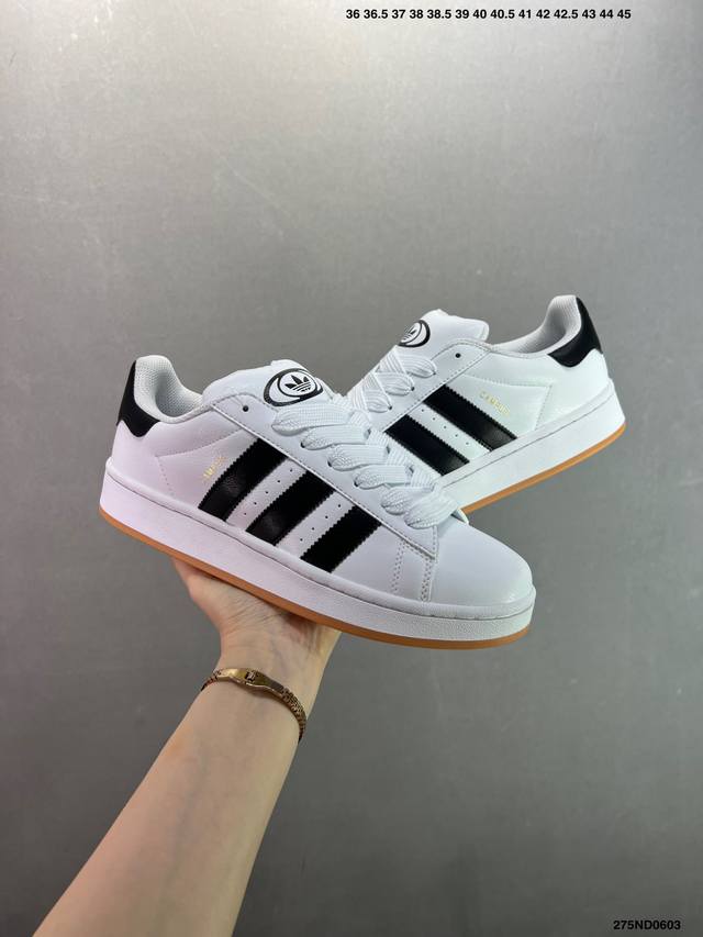 Ad Originals Campus 00S 学院系列面包风经典复古低帮百搭休闲运动板鞋 Jp 00 原鞋开发 正确版型 市面唯一全鞋采用原厂头层Sd皮料 正确宽版鞋盒 清洁度完美 诠释最高工艺 这次 Originals 选择了以经典复古鞋型 Campus 为蓝本打造全新面包鞋 这款鞋型联名不断 冠希当年对它更是钟爱有加 论牌面丝毫不输贝壳头、Forum 等大热鞋型 这次 Campus 一改 80 年代的瘦长造型 鞋舌、鞋身、鞋底甚至细节都变大了 营造出千禧年前后流行的面包鞋宽大廓形 因此鞋名改为 Ca