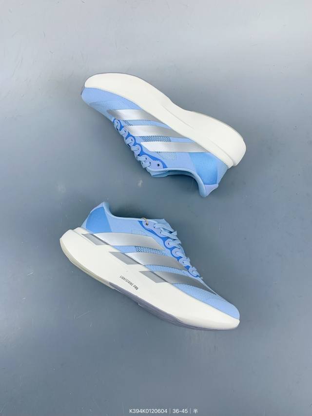 整体外观造型与Adizero Adios Pro Evo 1非常相似 中底配置方面搭载全掌Lightstrike Pro