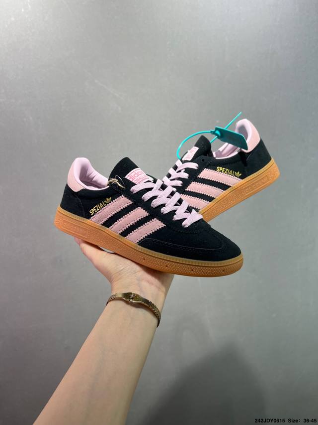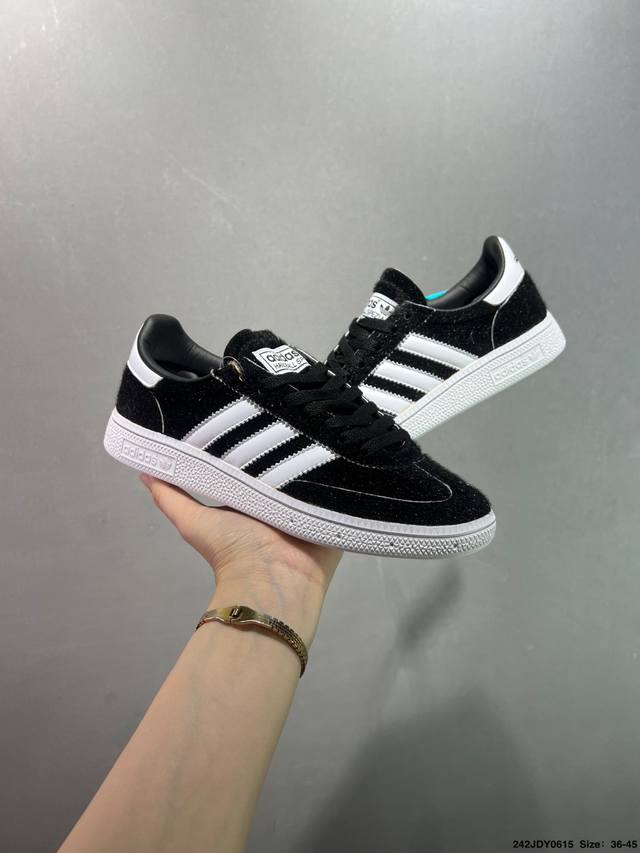 此款鞋延续了橡胶外底和经典款式的传统。优质绒面革鞋面和标志性的3条纹采用明亮的对比色,为久经考验的外观带来俏皮、富有表现力的饰面。