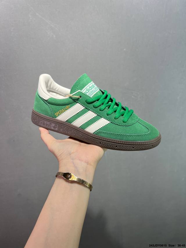 此款鞋延续了橡胶外底和经典款式的传统。优质绒面革鞋面和标志性的3条纹采用明亮的对比色,为久经考验的外观带来俏皮、富有表现力的饰面。
