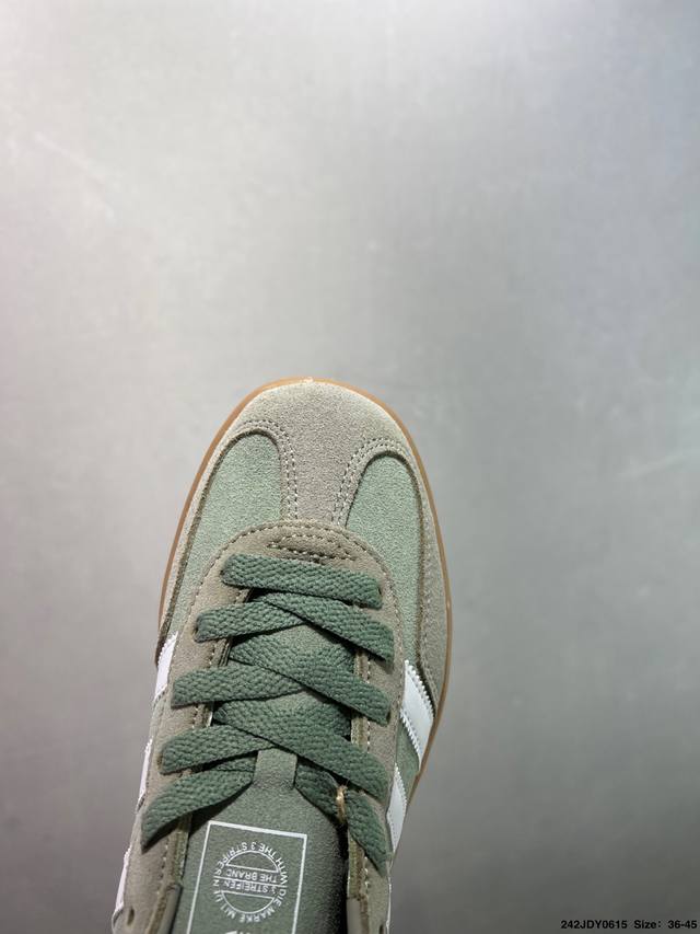 此款鞋延续了橡胶外底和经典款式的传统。优质绒面革鞋面和标志性的3条纹采用明亮的对比色,为久经考验的外观带来俏皮、富有表现力的饰面。