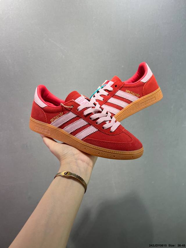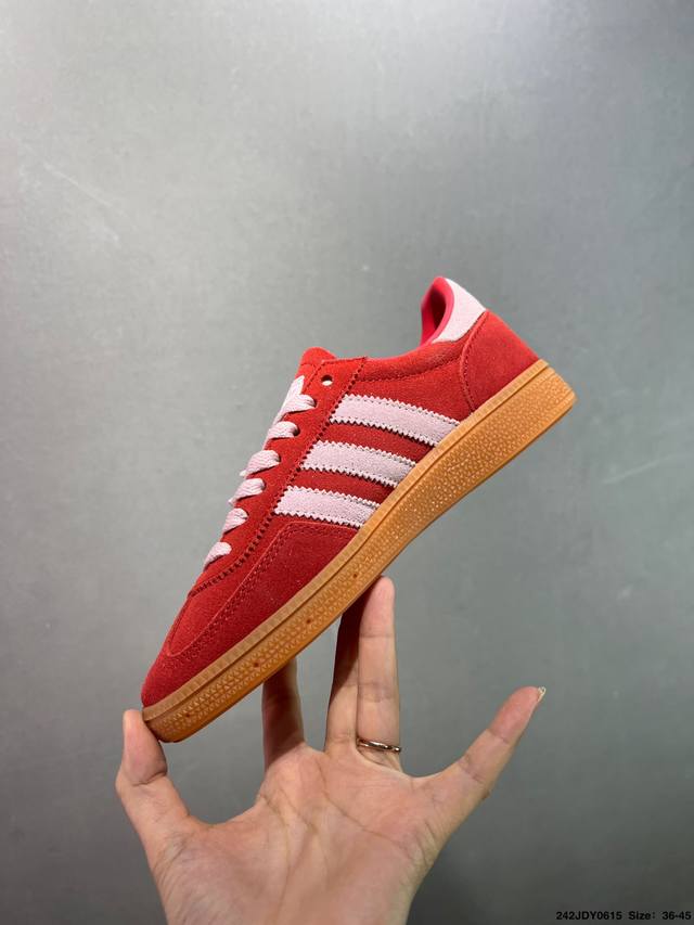 此款鞋延续了橡胶外底和经典款式的传统。优质绒面革鞋面和标志性的3条纹采用明亮的对比色,为久经考验的外观带来俏皮、富有表现力的饰面。