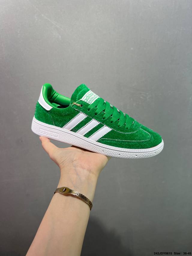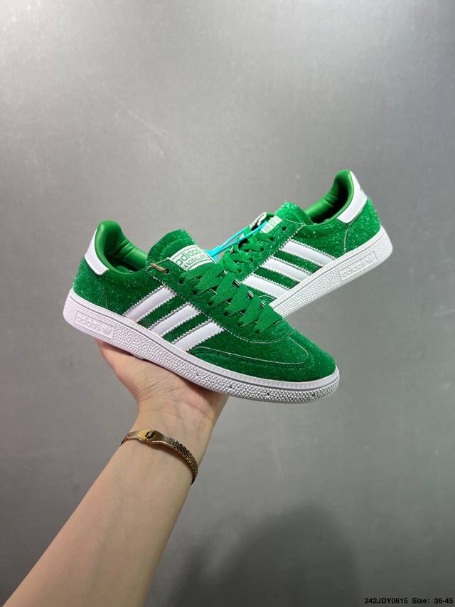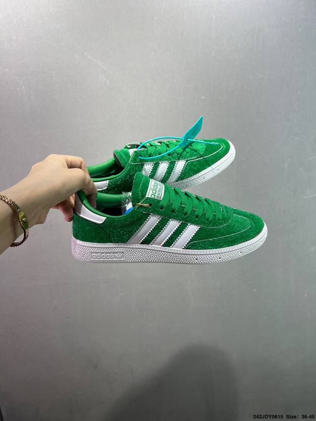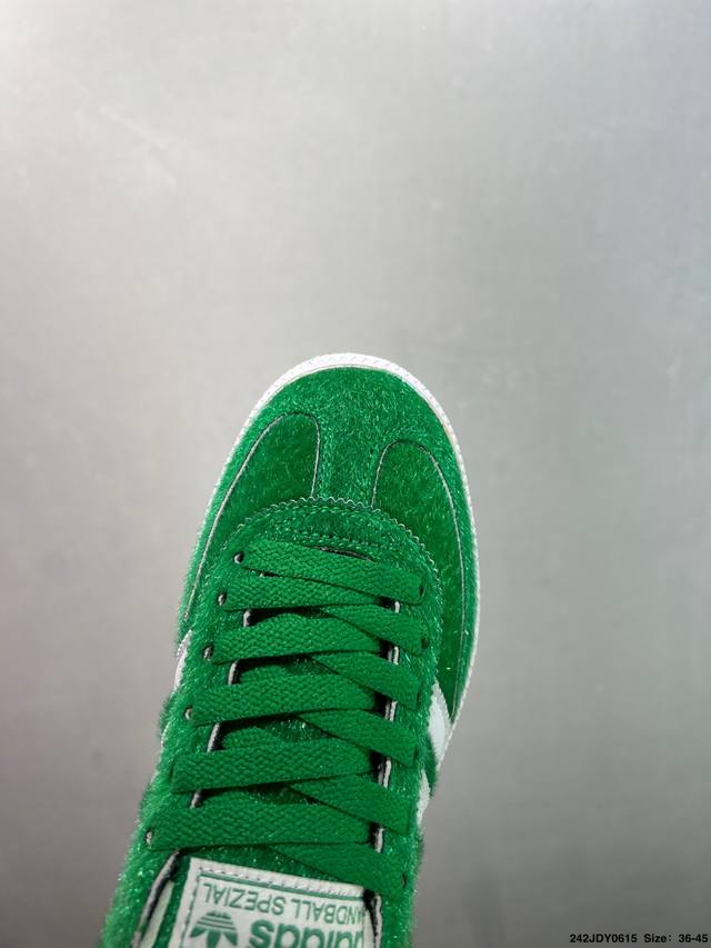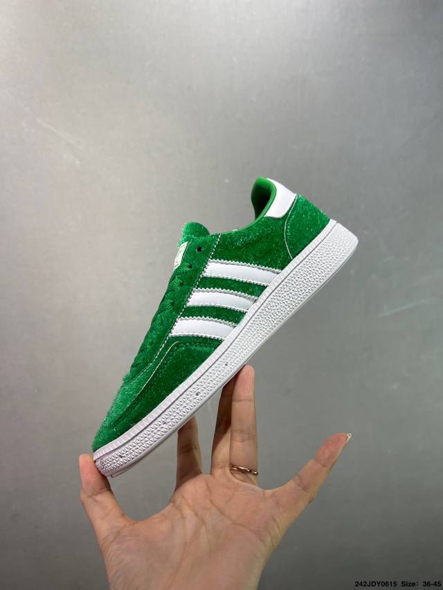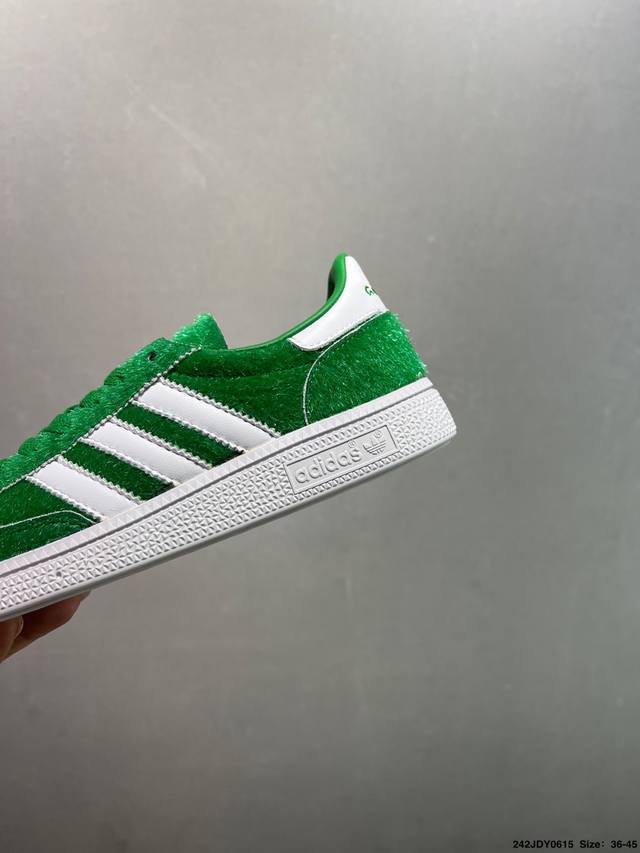 此款鞋延续了橡胶外底和经典款式的传统。优质绒面革鞋面和标志性的3条纹采用明亮的对比色,为久经考验的外观带来俏皮、富有表现力的饰面。