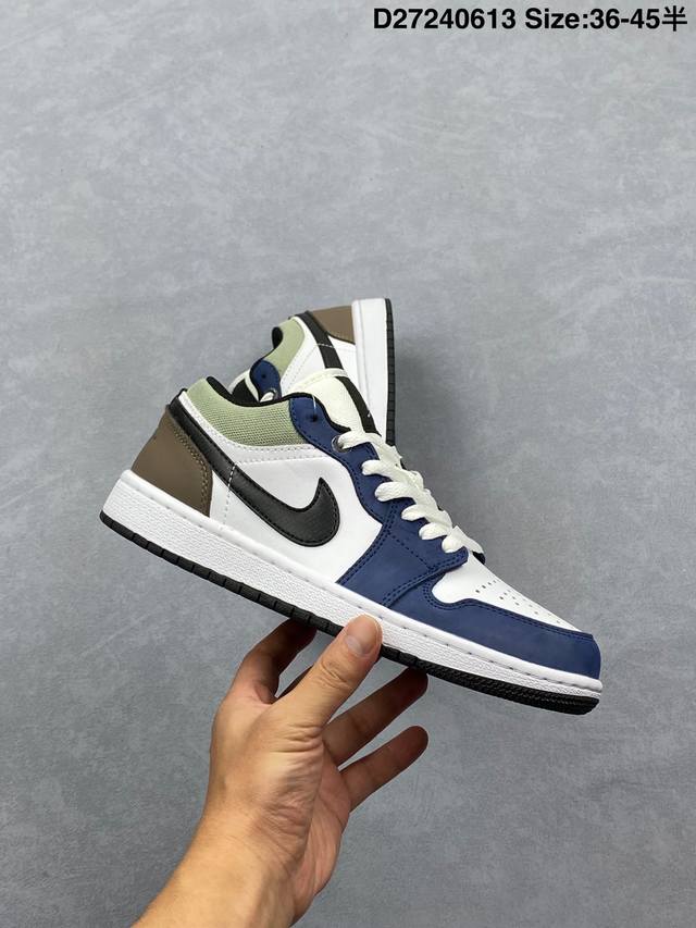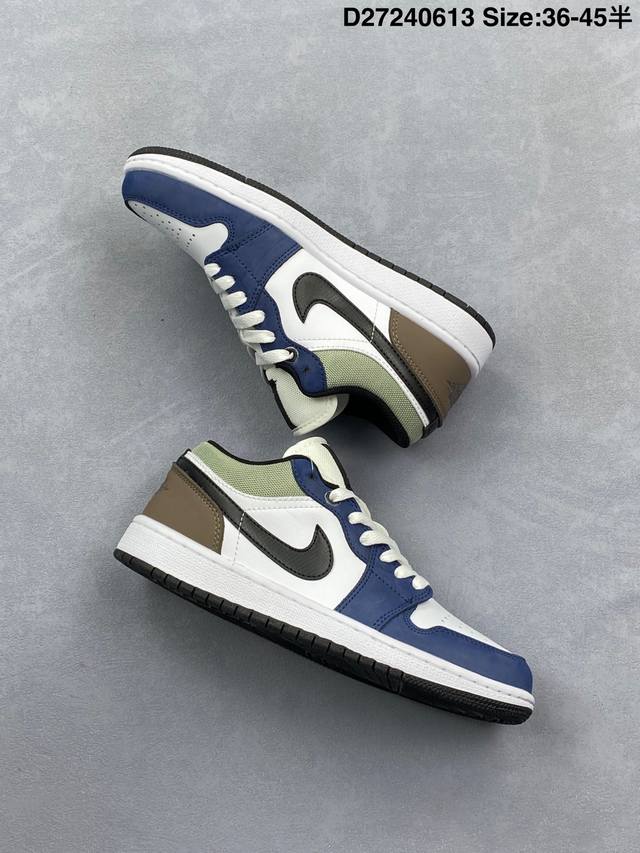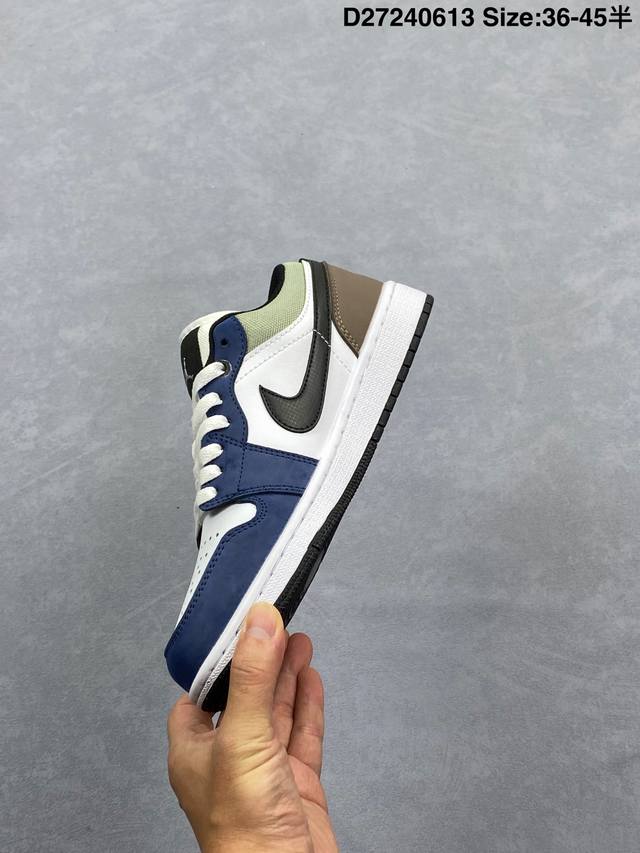 Air Jordan 1 Low Diffused Blue 低帮 白蓝棕 Aj1 乔丹1代 Aj1 乔1 低邦 白蓝拼接 乔丹篮球鞋系列 鞋款整体采用麂皮与皮革材质拼接质感十足,瞬间拉满复古氛围,整体有层次感,运用饱和度低的颜色,鞋身采用白色皮革打造,搭配水洗蓝框架覆盖层,鞋身两侧Swoossh Logo采用黑色格子织物点缀,鞋领处以橄榄绿帆布呈现,后跟使用棕色制作,鞋舌标签上Jumpman Logo采用金属银色点缀,低调又精致;后跟Wwings Logo则以黑色压印呈现,最后以白色中底搭配黑色橡胶外底