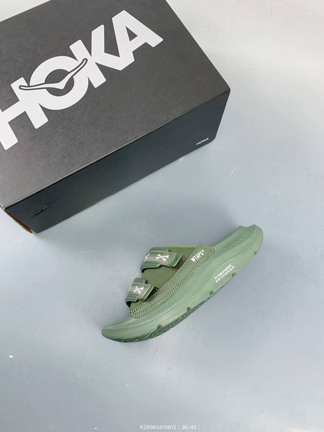 Hoka 联名 Wtaps Ora 骨头厚底增高魔术贴复古沙滩舒适一字拖户外休闲鞋