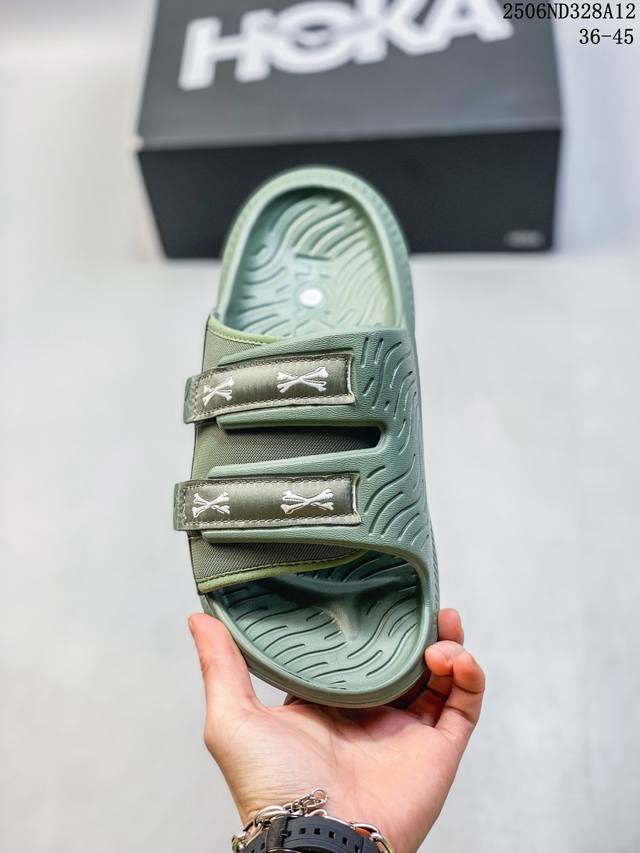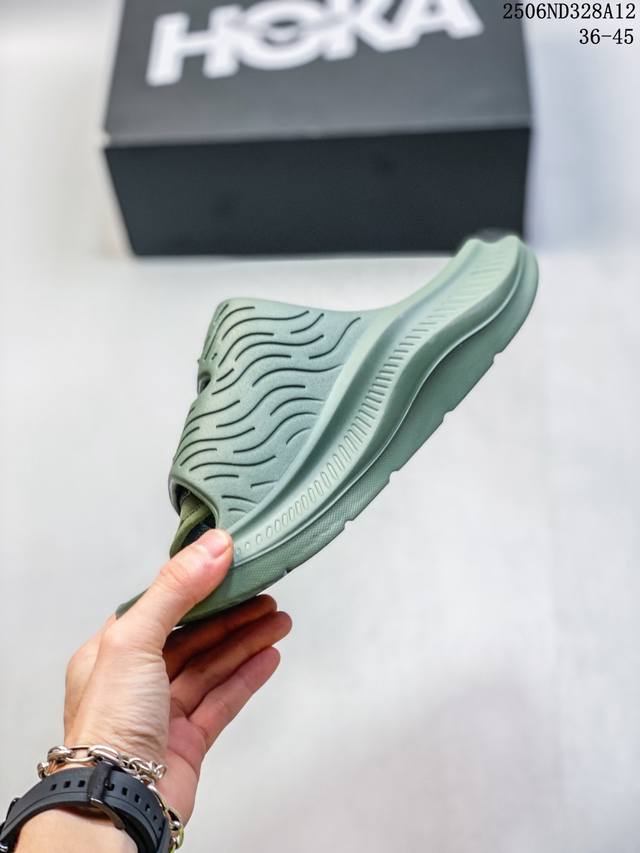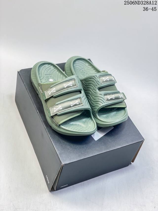 Hoka 霍卡 采用人体工学设计高工艺Eva一次爆炸超轻化鞋底模溯溪也要穿出彩美国新兴跑鞋品牌Hoka One One Ora Recovery Slide 3 奥拉复兴3代系列夏季时尚室内外涉水百搭休闲拖鞋 1134