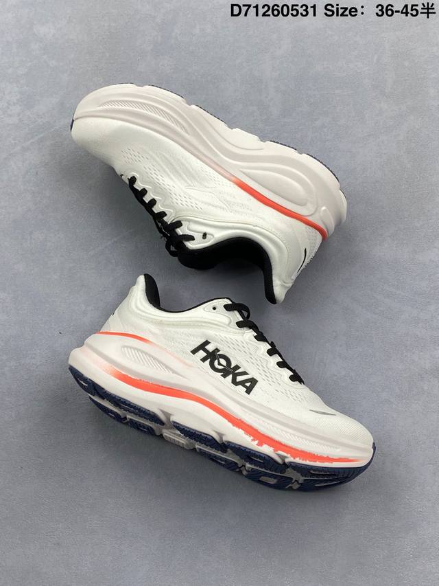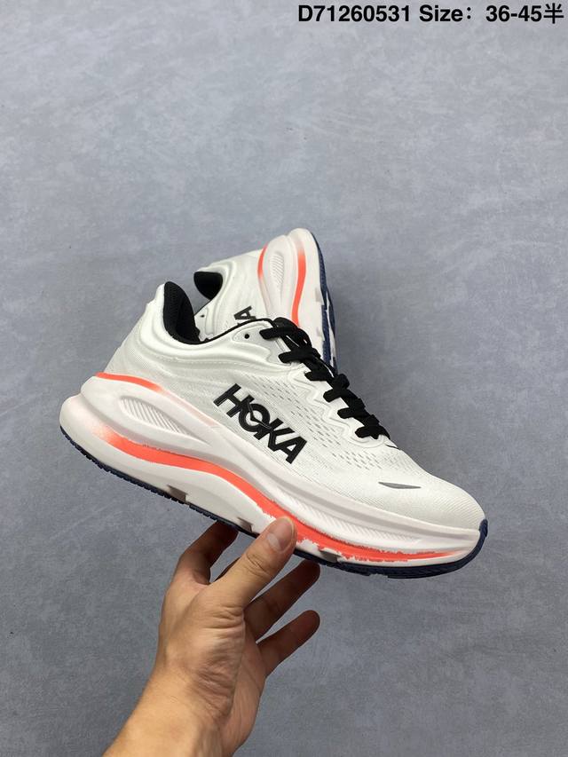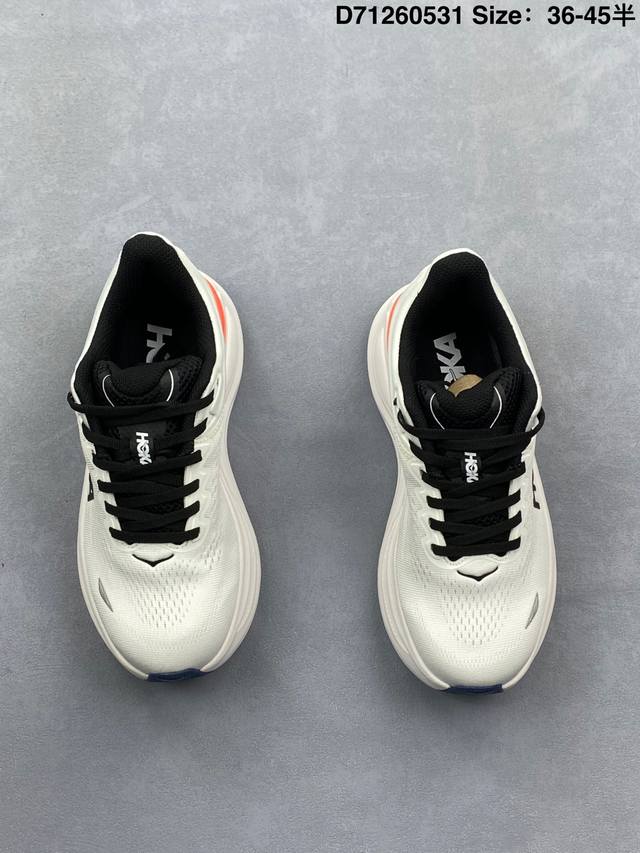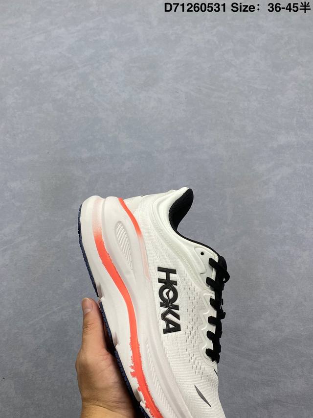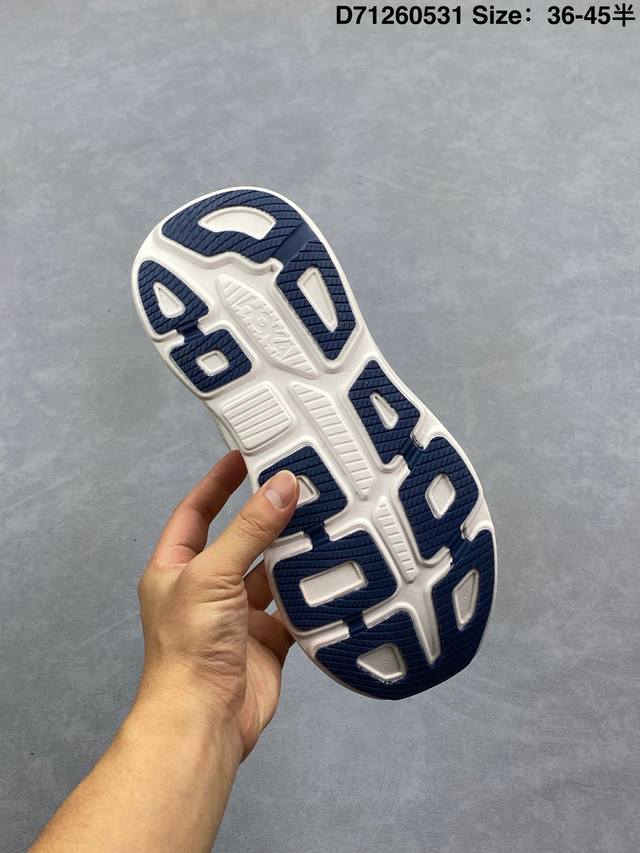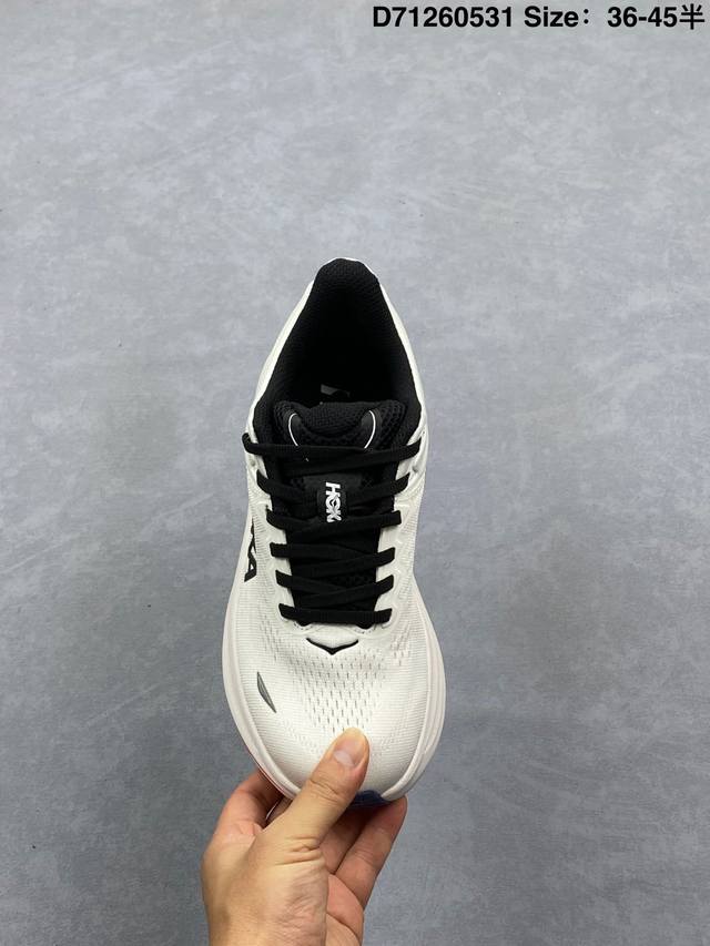 Hoka One One M Clifton 9 机能缓震跑鞋 美国新兴跑鞋品牌,鞋面部分采用工程网眼面料,可以确保必要的透气性能。