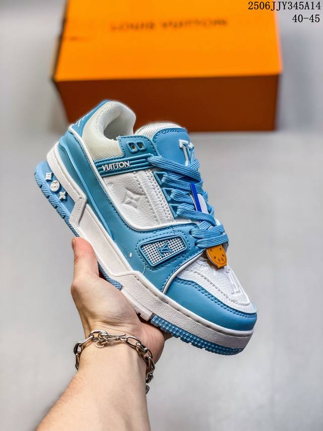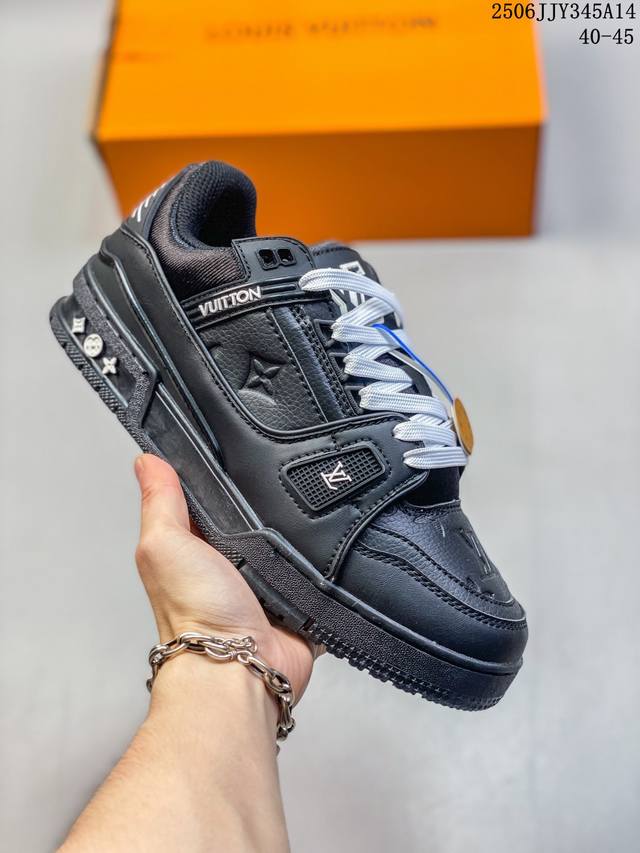 Louis Vuitton 路易威登 小胖丁 男女鞋广东原产,升级厚实抽屉礼品鞋盒及包装说明书防尘布袋物件,采用细柔小牛皮革鞋面材质,鞋垫嵌入加厚软感Eva物料,后跟耐弯折滴塑支撑片,全新开发Tpu光泽组合隔色鞋底这双“变胖”了的Trainer好受瞩目 又大又圆 ,全新Lv路易威登Louis Vuitton Trainer Maxi Low Leather Sneaker 面包版马克西系列低帮休闲运动文化百搭篮球板鞋