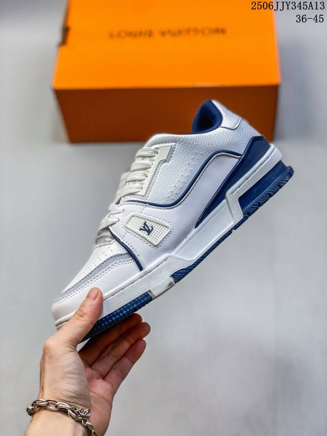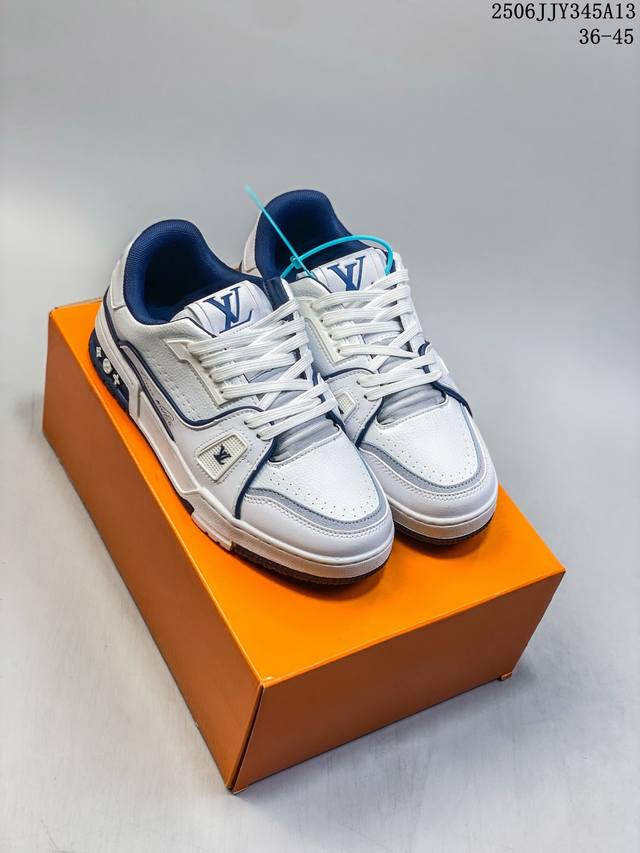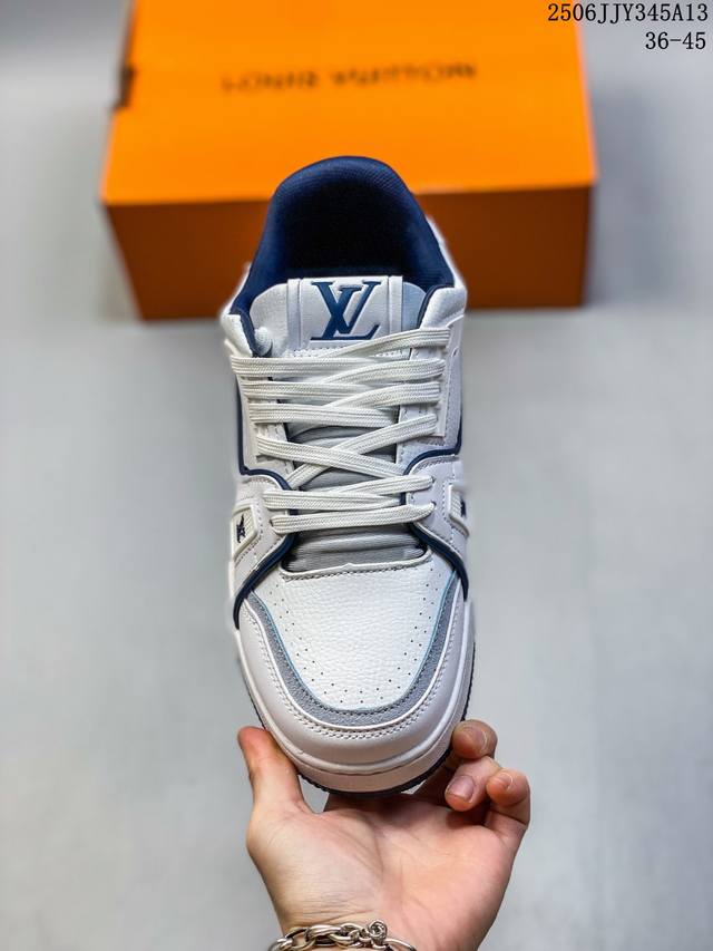 Louis Vuitton 路易威登 小胖丁 男女鞋广东原产,升级厚实抽屉礼品鞋盒及包装说明书防尘布袋物件,采用细柔小牛皮革鞋面材质,鞋垫嵌入加厚软感Eva物料,后跟耐弯折滴塑支撑片,全新开发Tpu光泽组合隔色鞋底这双“变胖”了的Trainer好受瞩目 又大又圆 ,全新Lv路易威登Louis Vuitton Trainer Maxi Low Leather Sneaker 面包版马克西系列低帮休闲运动文化百搭篮球板鞋