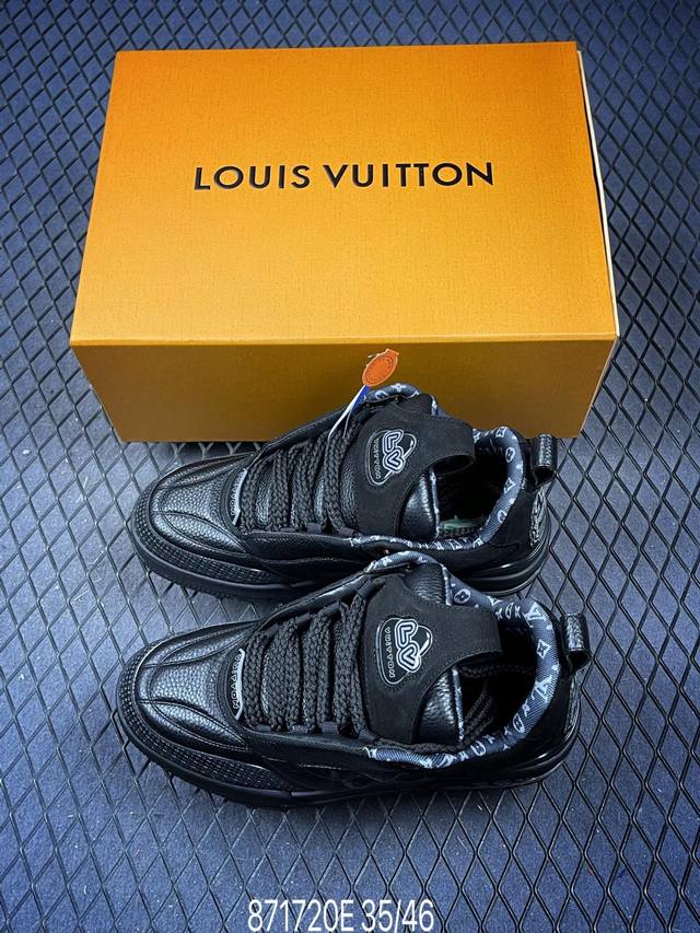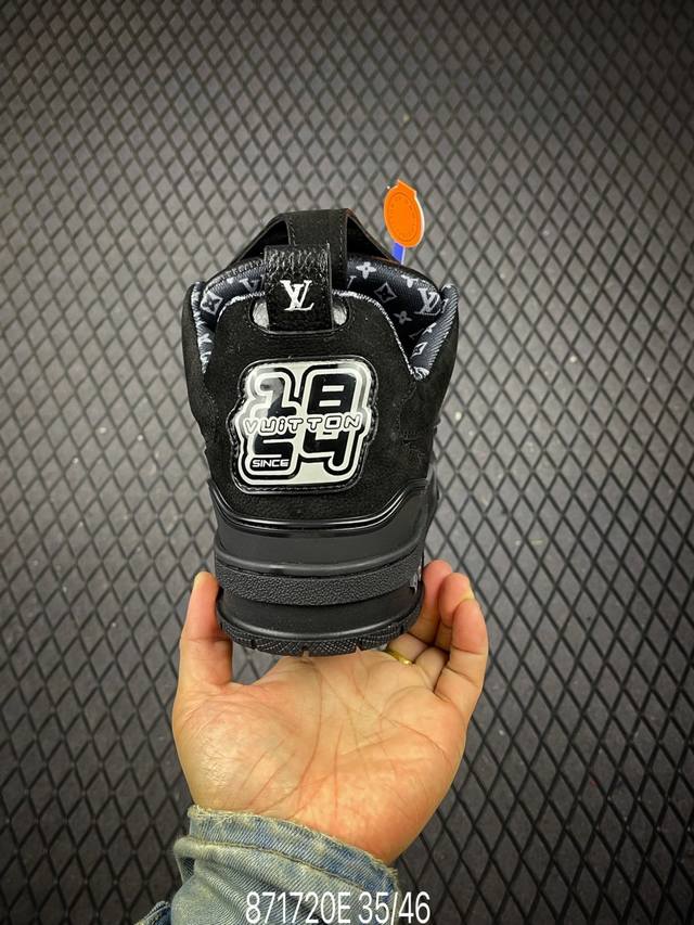 Lv-路易-威登Trainer 2025走秀最新款原版1:1开发复刻!!上脚非常舒适 做工精细鞋面由意大利进口小牛皮拼接,侧边饰有品牌Logo标志,进口网布垫脚透气网布内里,脚感超舒适。原厂特供原版Tpu组合大底。套包工艺 尺码:35-46编码:871720E