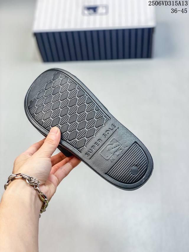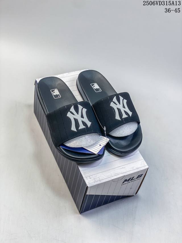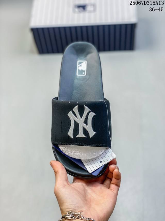 Mlb New York Yankees 拖鞋 字母印花 韩国限定Mlb 字母百搭潮流款情侣拖鞋 代购专属 原厂代工轻量发泡鞋底 环保复合去臭材质 鞋面采用合成