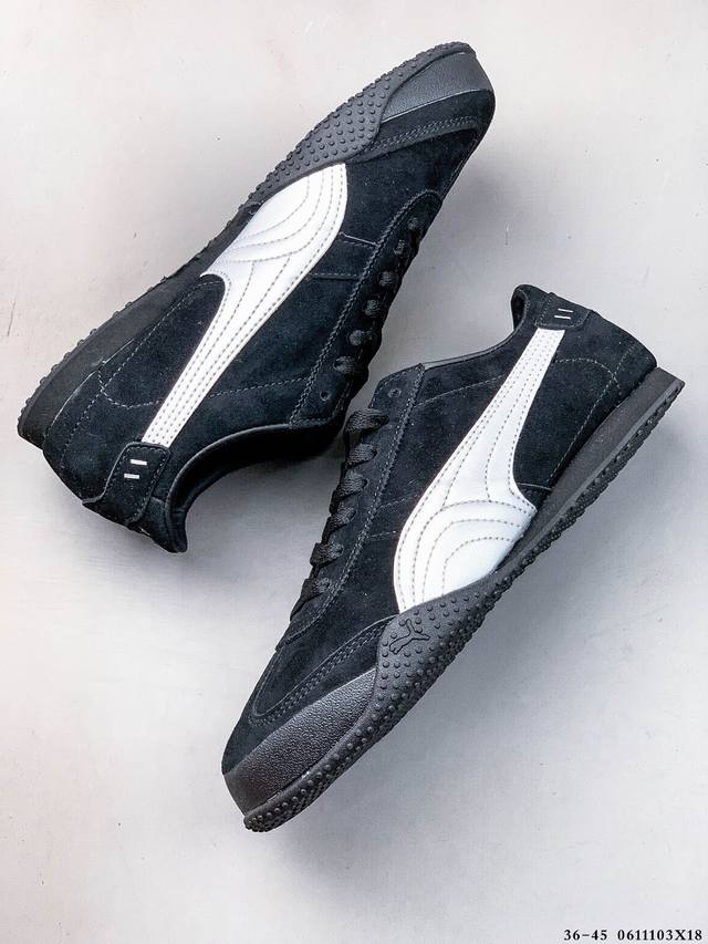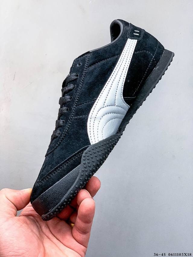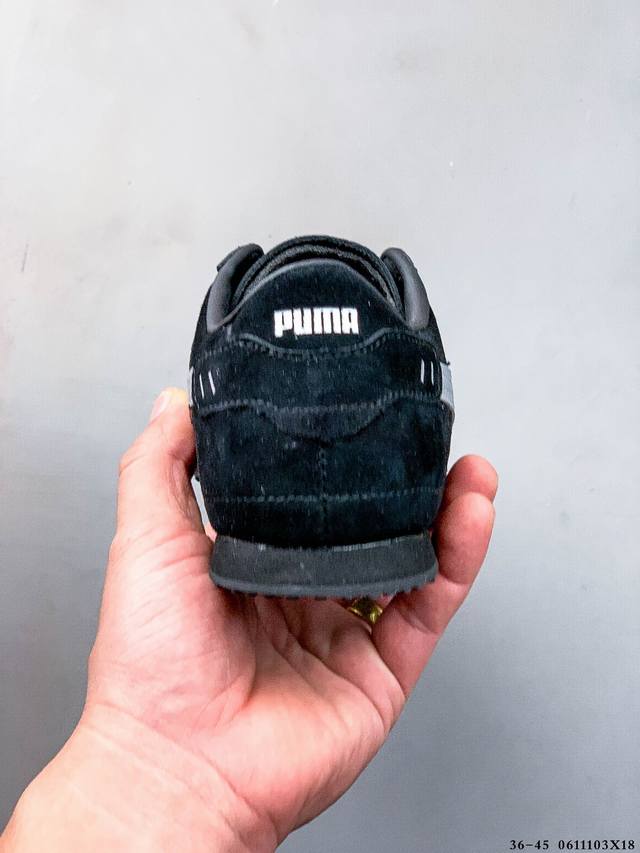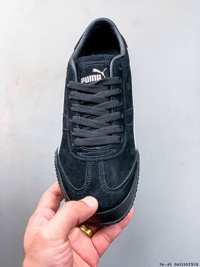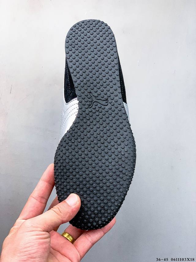 Bella Ut的每一处细节,都能感受到设计者的匠心独运。整体鞋面选用了高品质的皮革材质,质感满分;延续Formstrip设计语言,层次分明,彰显个性。鞋头处的包头设计,搭配麂皮材质,进一步提升了整体的精致感。而标志性的薄底和点状橡胶外底,加上上翘的设计,包裹着鞋面,形成了Puma Bella Ut独一无二的外观。