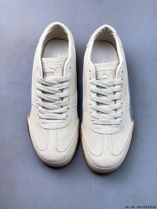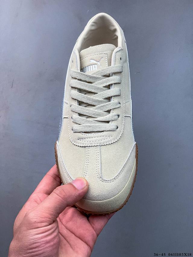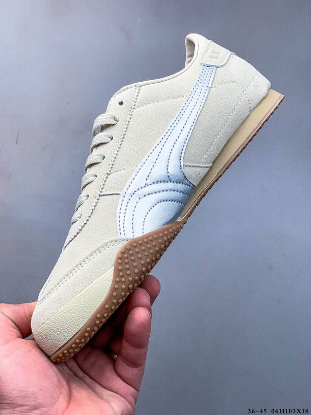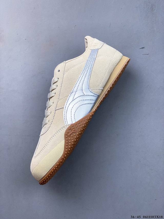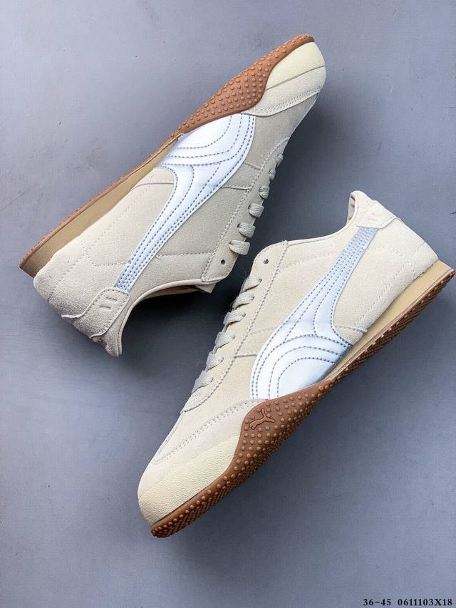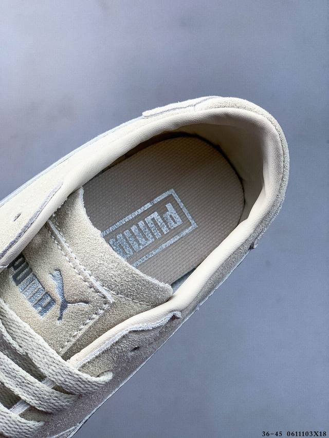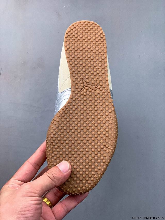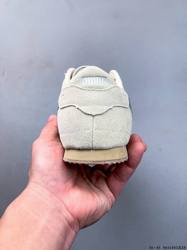 Bella Ut的每一处细节,都能感受到设计者的匠心独运。整体鞋面选用了高品质的皮革材质,质感满分;延续Formstrip设计语言,层次分明,彰显个性。鞋头处的包头设计,搭配麂皮材质,进一步提升了整体的精致感。而标志性的薄底和点状橡胶外底,加上上翘的设计,包裹着鞋面,形成了Puma Bella Ut独一无二的外观。
