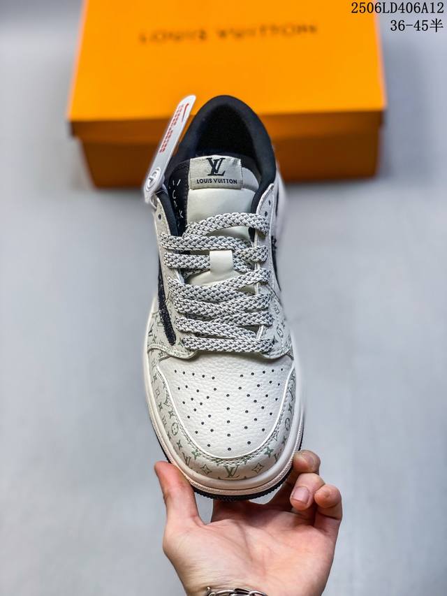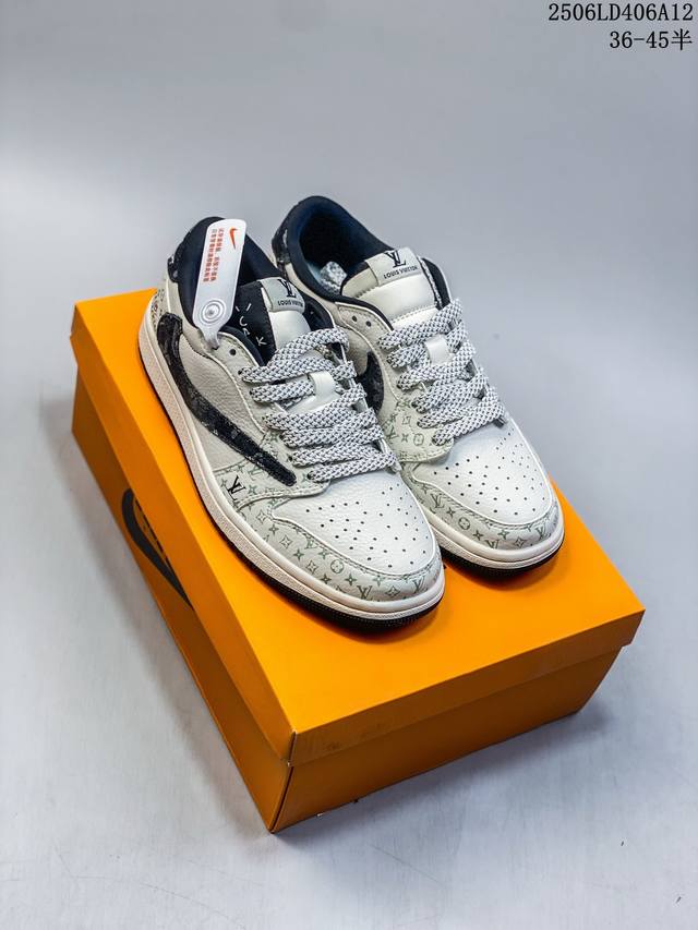 Travis Scott X Fragment Design X Jordan Air Jordan 1 Low Og Sp Lv联名 “黑牛仔印花” 多方联名合作融合了Travis Scott 独特的音乐风格,藤原浩个性的设计风格以及Jordan品牌的经典元素 使其成为一双具有独特身份和价值的鞋子 清新而立体的外观加上联名标识更突出了其独特身份 这种配色方案显示出活力和时尚感 在视觉上引人注目 鞋身的质感和细腻的细节处理使其显得高端而格调十足 这款“倒钩”联名是设计与创意完美结合 融合多方的个性风格是一