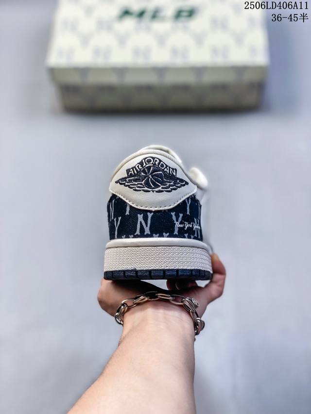 Travis Scott X Fragment Design X Jordan Air Jordan 1 Low Og Sp Mlb联名 “Ny黑印花” 多方联名合作融合了Travis Scott 独特的音乐风格,藤原浩个性的设计风格以及Jordan品牌的经典元素 使其成为一双具有独特身份和价值的鞋子 清新而立体的外观加上联名标识更突出了其独特身份 这种配色方案显示出活力和时尚感 在视觉上引人注目 鞋身的质感和细腻的细节处理使其显得高端而格调十足 这款“倒钩”联名是设计与创意完美结合 融合多方的个性风格是