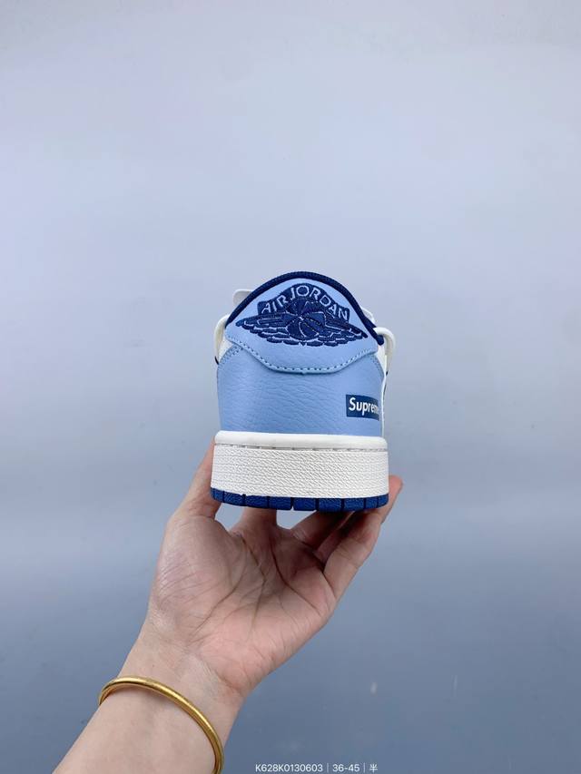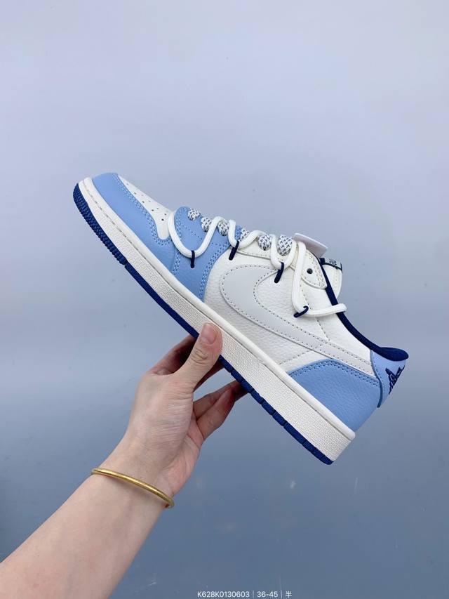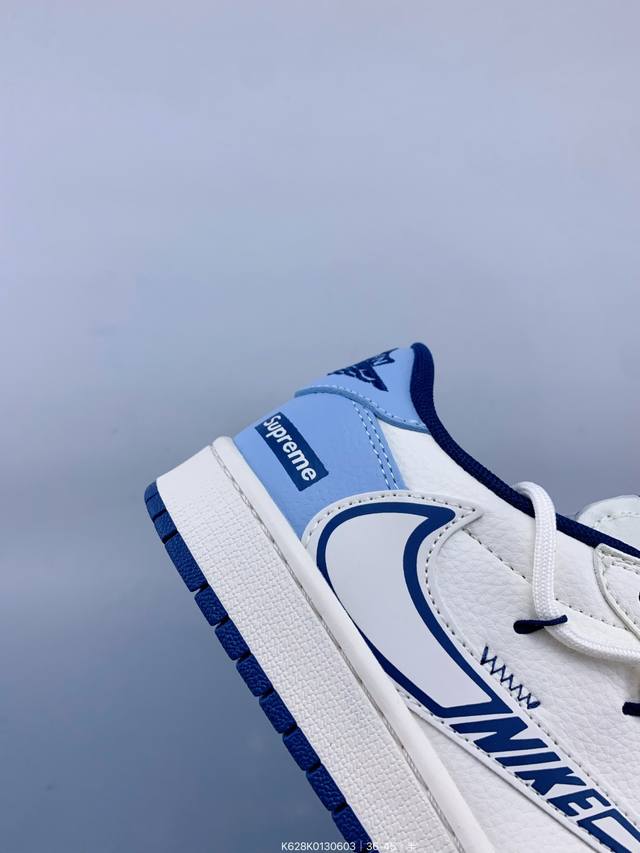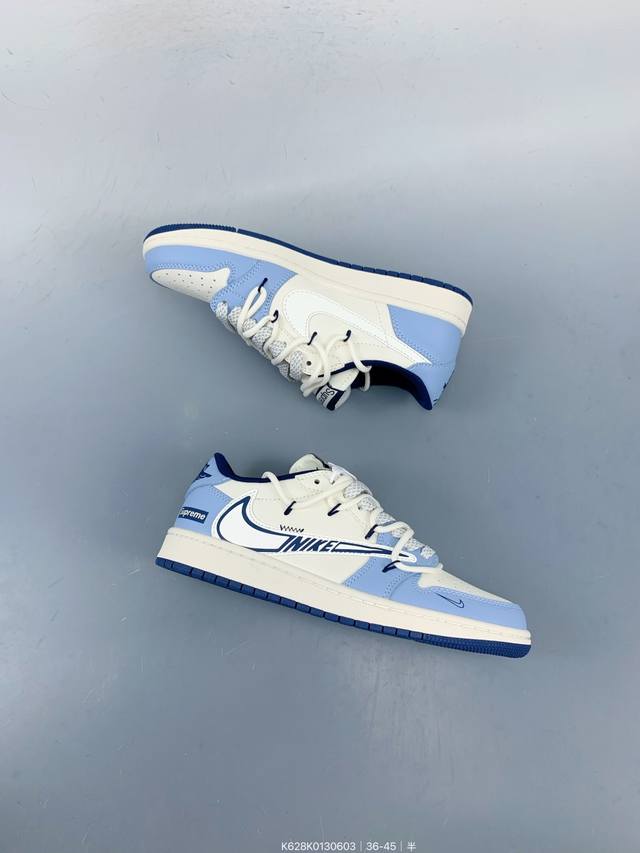Travis Scott X Fragment Design X Jordan Air Jordan 1 Low Og Sp “Supreme联名 白蓝抽绳” 多方联名合作融合了Travi翻毛蓝勾S Scott 独特的音乐风格,藤原浩个性的设计风格以及Jordan品牌的经典元素 使其成为一双具有独特身份和价值的鞋子 清新而立体的外观加上联名标识更突出了其独特身份