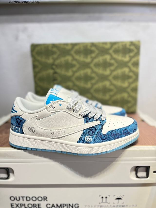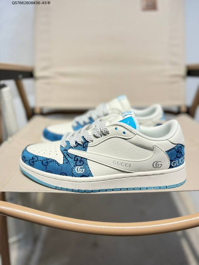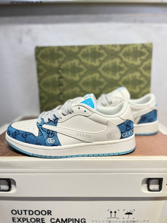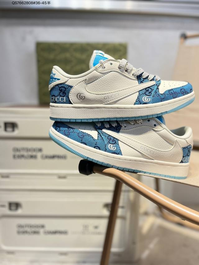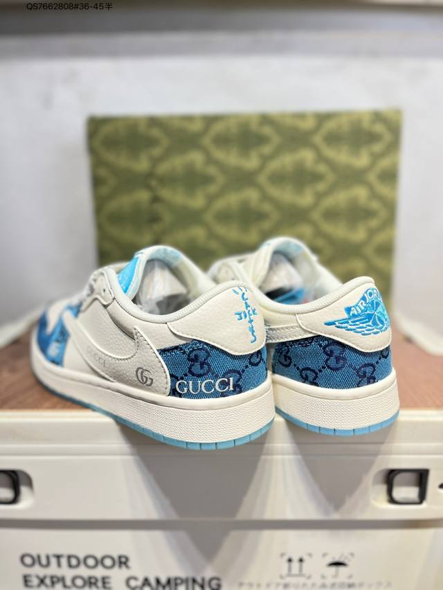 公司级头层皮古驰 X 乔丹Air Jordan 1 Low Aj1低帮系列篮球鞋 官方同步配色 原装级产物 #拒绝公底 立体鞋型 细节完美 高清洁度Xz1658 Qs766 8#36-45半