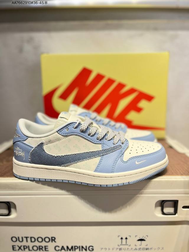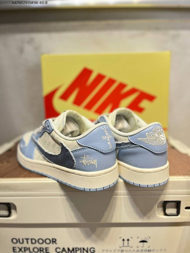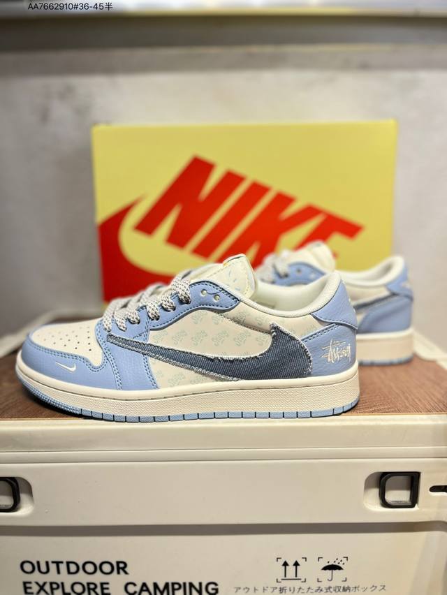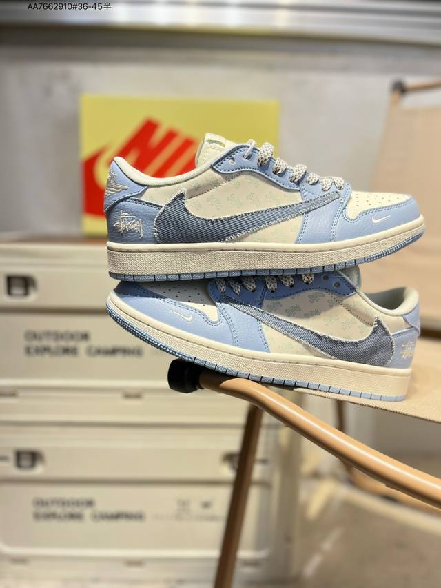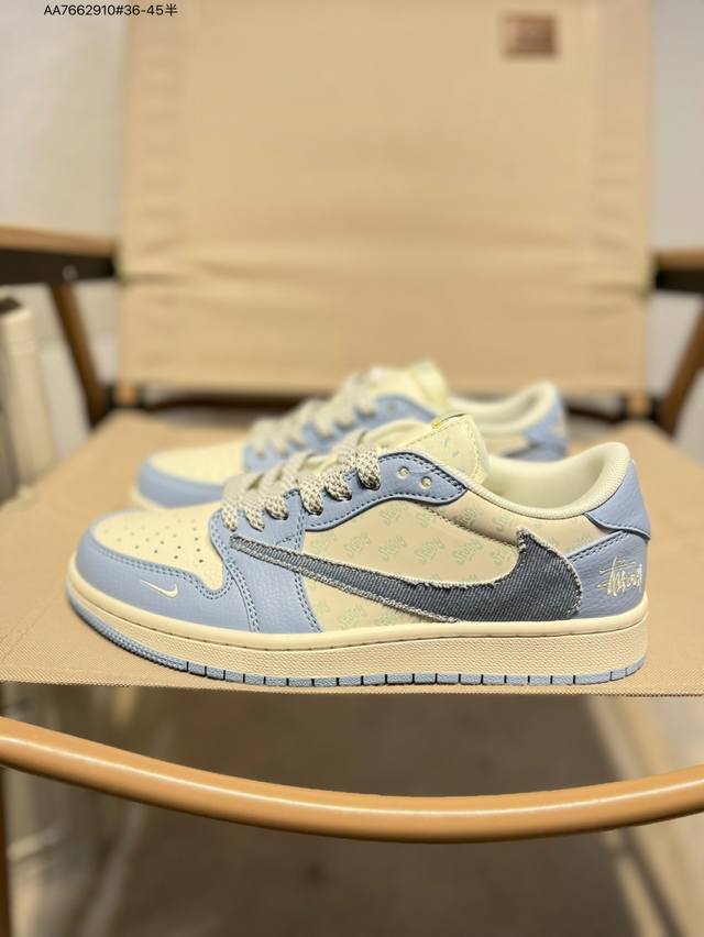 公司级头层皮斯图西 X 乔丹Air Jordan 1 Low Aj1低帮系列篮球鞋 官方同步配色 原装级产物 #拒绝公底 立体鞋型 细节完美 高清洁度Hs8068 Aa7662910#36-45半