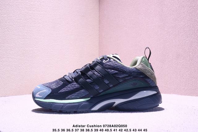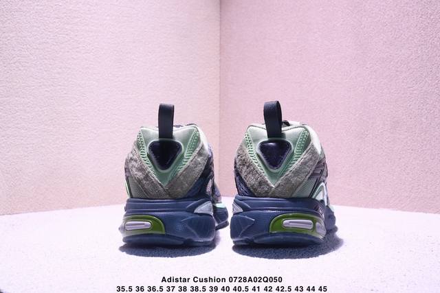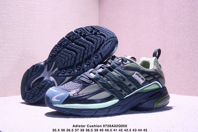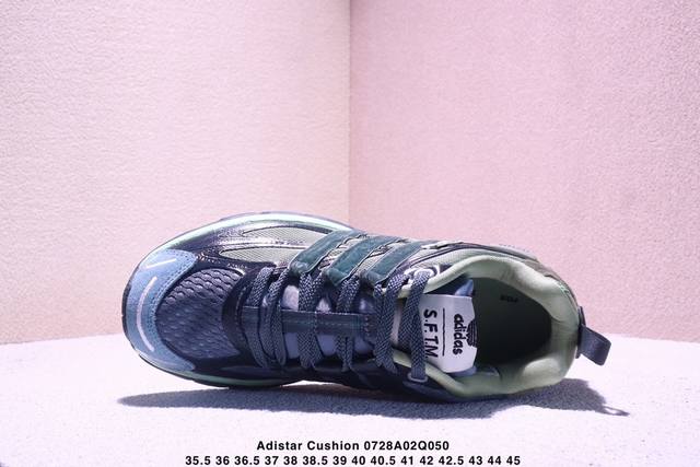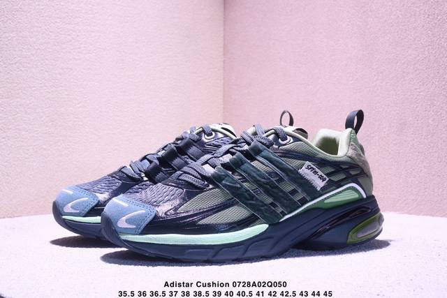 公司级Adidas Adistar Cushion Sftm防滑耐磨 低帮 运动老爹鞋 这款鞋以90年代的复古跑鞋为灵感,整体造型经典且富有层次感,非常适合喜欢复古风格的消费者。绿色配色:独特的绿色设计非常吸睛,搭配起来能为整体造型增添亮点。舒适性:搭载了Adidas的Cushion缓震技术,提供了良好的脚感和缓震效果,适合长时间穿着。低帮设计:灵活轻便,适合日常通勤或休闲活动。材质与做工:鞋面采用多种材质拼接 如网眼、皮革等 ,质感出色,透气性良好。作为联名款,做工细节较为精致,体现了Adidas和Sf