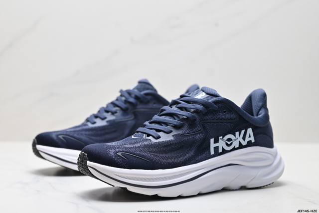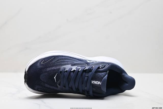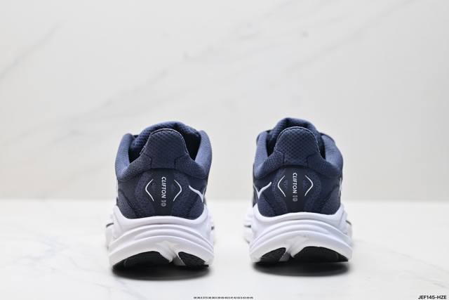 公司级Hoka M Clifton 10 轻量低帮户外越野跑鞋 户外山脉越野轻量运动跑鞋 鞋面用轻的无缝架构 鞋带用了弹性不易松脱的扁宽弹性鞋带 轻薄的Tpu贴