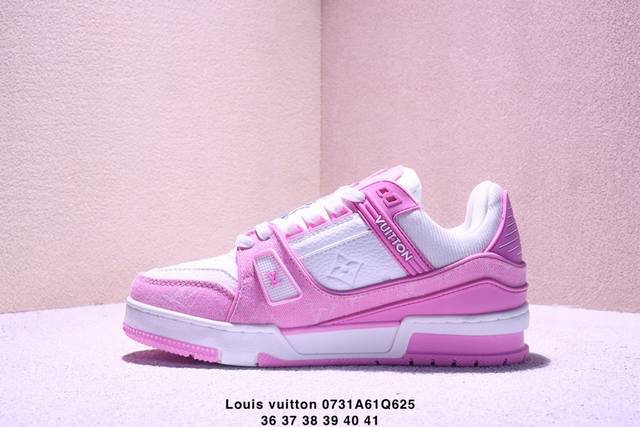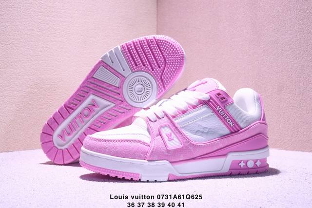 公司级Louis Vuitton Trainer Sneaker Low 路易威登 休闲运动文化百搭板鞋 舒适防滑底和百搭性霸屏整个时尚娱乐圈 细节调整完美主义 鞋面采用柔软皮革鞋面 独家开模大底 侧边采用3D打印标志性Logo 尽显贵族时尚气息 配带正品全套包装尺码:36-41Xm0731Q625