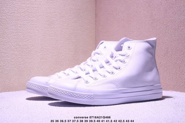 匡威低帮 高帮超软皮面 Converse 1970S 经典复古,荔枝纹奶油低爆款出货Converse Chuck 70S 超软荔枝纹皮面 欧阳娜娜同款,为了迎合匡威迷们能在这个季节穿上他们最爱的1970S版型而又不怕寒,公司应用了最耐寒的高端皮面作为原材料,工艺上依然和1970一样的形体搭配!让这个季节的匡威迷们重新踏上青春活力。 码数:35 36 36.5 37 37.5 38 39 39.5 40 41 41.5 42 42.5 43 44Xm0718Q466