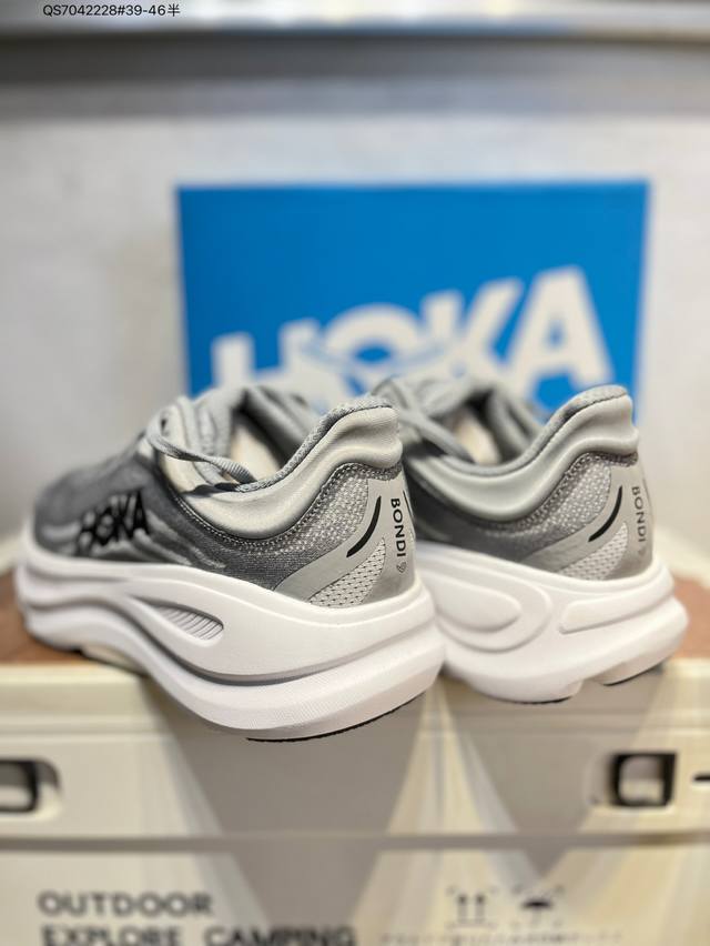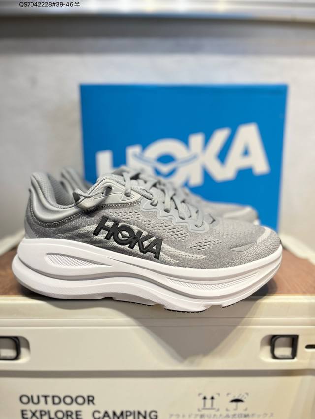 升级原楦原纸版开发#采用柔软网织呼吸材料鞋面材质#轻量化材料高弹力泡棉升级中底#内嵌欧索莱Ortholite 混合 再生 鞋垫“飞要这么厚”跑者解压神器,美国新兴跑鞋品牌Hoka One One Bondi 9 Low 邦迪9代系列低帮厚底轻量休闲运动慢跑鞋1162011 Qs7042228#39-46半