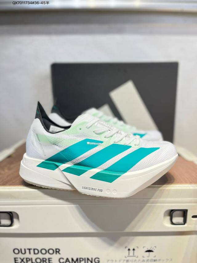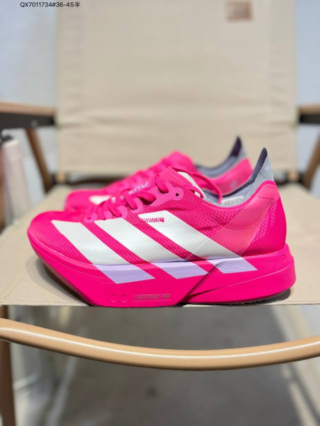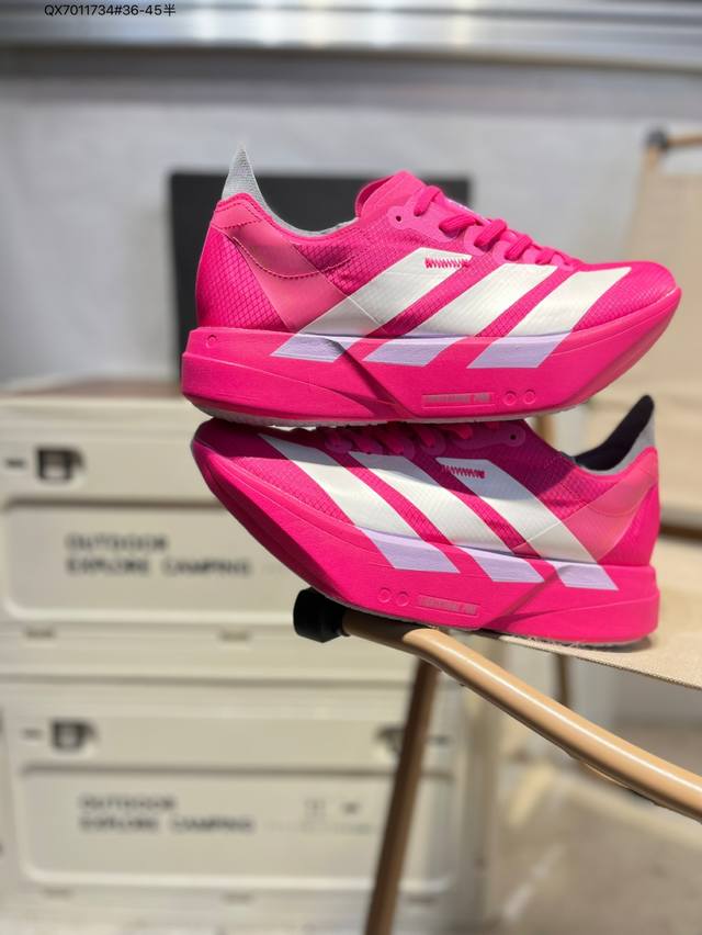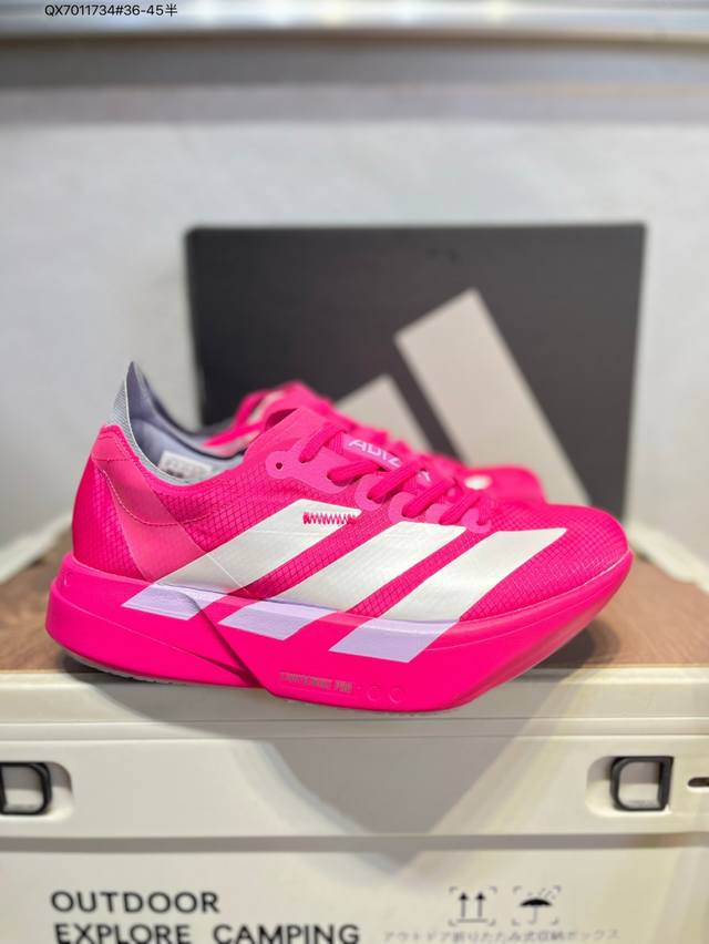 升级原楦原纸版开发#采用轻质单向弹性梭织鞋面材质#中底搭载Lightstrike高密度发泡+前掌单块Lightstrike Pro避震科技#外搭马牌橡胶橡胶防滑底片全新极简设计语言,阿迪达斯Adidas Adizero Adios Pro Evo 4 Shock Pink 零度平安进化版4系列低帮轻便透气竞速休闲运动慢跑鞋“网织荧光粉”Jr1269 Qx7011734#36-45半