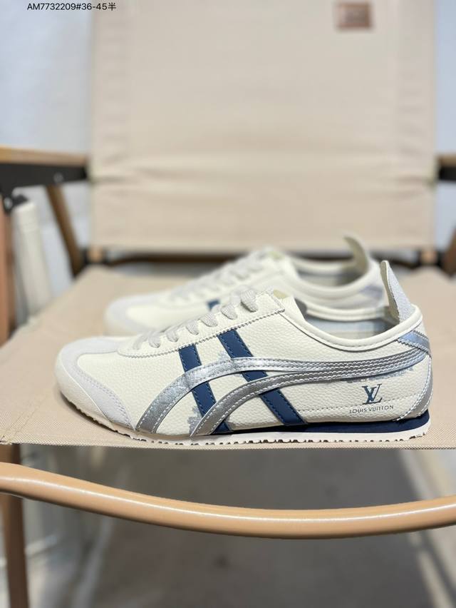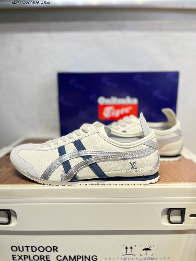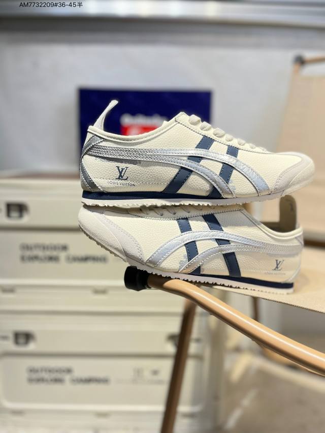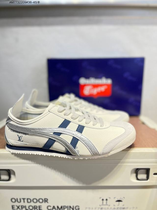 定制款# L Tiger Mexico 66 Sd 鬼冢虎 墨西哥升级版系列低帮复古经典虎爪百搭休闲皮革慢跑鞋 采用软质粒面牛剖革组合翻毛皮饰条鞋面材质Dl408 Am773 9#36-45半