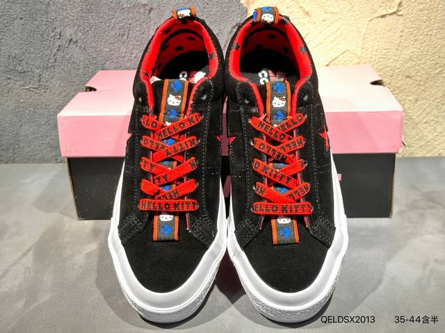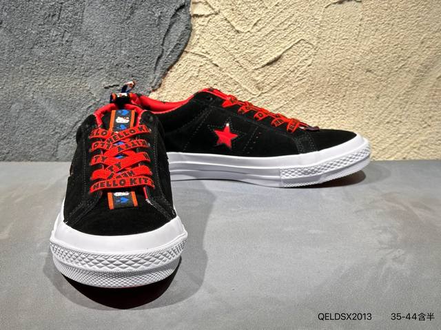 市面最为正确Pu硅蓝中底萌到犯规,凯蒂猫联名Hello Kitty X Converse One Star Suede Ox Top低帮麂皮硫化板鞋“浅灰猫脸五星”162937C主要以 Hello Kitty 形象搭配标志性粉色,鞋头处的小蝴蝶结、星星两侧的猫胡须这样的小细节更是可爱到犯规。Hello Kitty不注视你,反而像猫星人般好奇的凝望着街头上的人。163904C Qeldsx2013