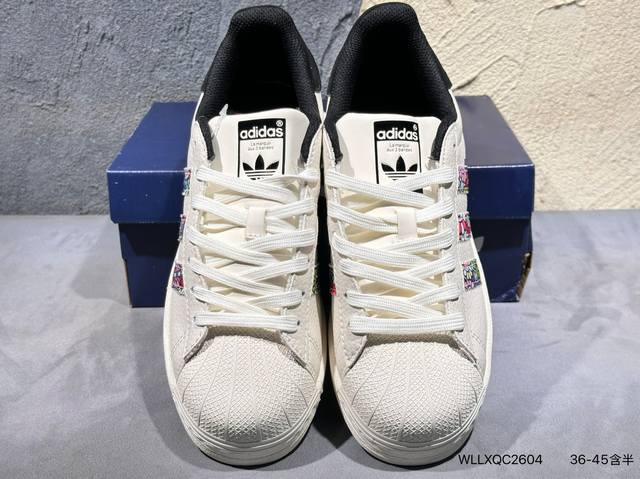 新品上市实拍 男女鞋真标半码制#升级原楦原纸版开发#采用翻毛皮鞋面材质# 改良全包围鞋垫#正确 版鞋底模具及扇贝头盖片阿迪达斯 三叶草Adidas Originals Superstar Ii Core Black 经典贝壳头系列低帮百搭休闲运动板鞋“翻毛黑灰车线”Ad8020 Wllxqc 4