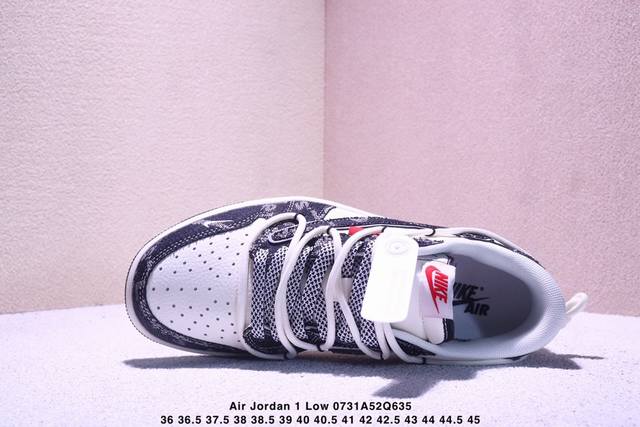 海外爆款限量发售!公司级 Travis Scott X Fragment Design X Jordan Air Jordan 1 Low Og Sp 李维斯联名 “米白黑帆布绑带” 多方联名合作融合了Travis Scott 独特的音乐风格,藤原浩个性的设计风格以及Jordan品牌的经典元素 使其成为一双具有独特身份和价值的鞋子 清新而立体的外观加上联名标识更突出了其独特身份 这种配色方案显示出活力和时尚感 在视觉上引人注目 鞋身的质感和细腻的细节处理使其显得高端而格调十足 这款“倒钩”联名是设计与创意