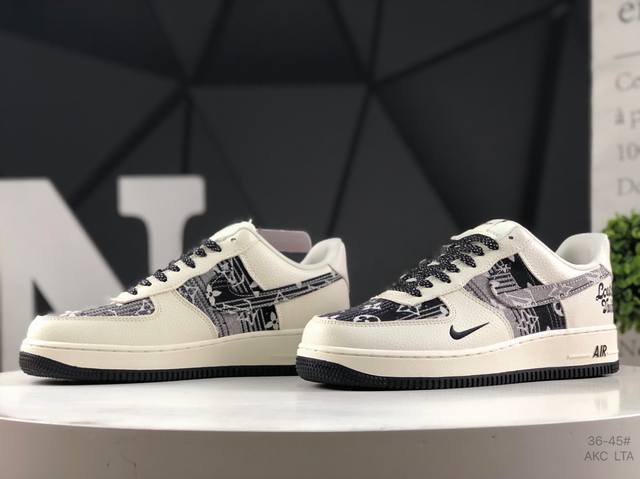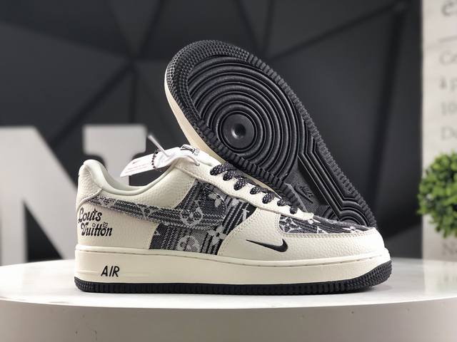 海外爆款限量发售!高端定制 耐克 Nike Air Force 1 '07 Low 路易威登Lv联名--- 白黑牛仔印花 高端定制 低帮休闲板鞋 定制鞋盒 大厂