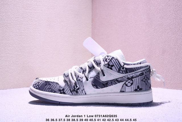 / 海外爆款限量发售!Nike Jordan Air Jordan 1“Lv联名 灰花布抽绳” 高端定制 低帮 复古 减震 防滑 耐磨 篮球鞋 定制鞋盒 大厂纯原品