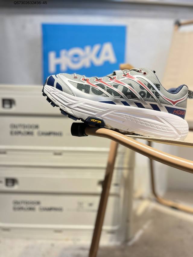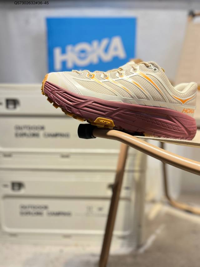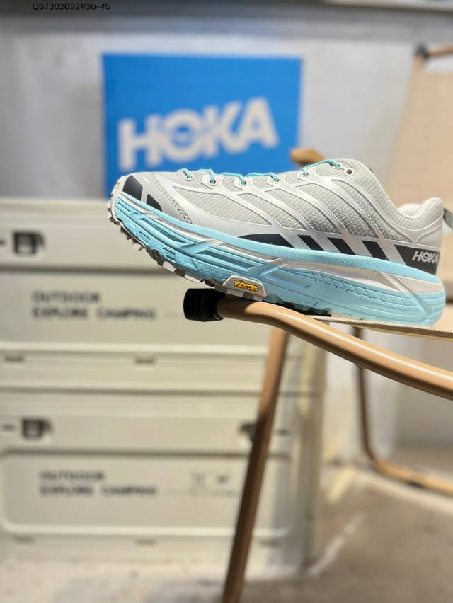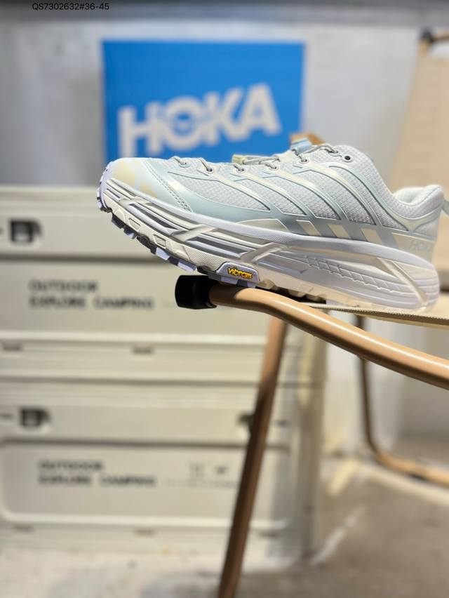 真标半码制#升级原楦原纸版开发版型#采用热熔透气网孔科技鞋面材质#搭载轻量化材料超轻量泡棉中底#外置V版橡胶防滑黄金大底专为越野跑者设计,美国新兴跑鞋品牌Hoka One One Mafate Three 2 Low 玛法特2系列低帮厚底网织轻量户外越野运动慢跑鞋1141572 Qs7302632#36-45