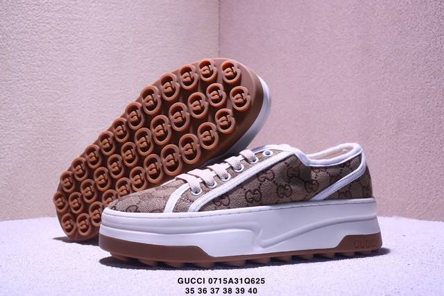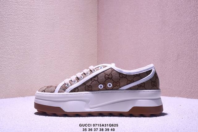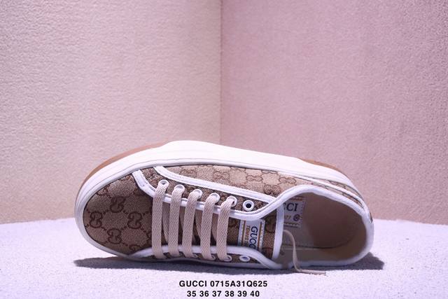 真标Gucci古驰 Interlocking 低帮系带 时尚板鞋这件亮眼吸睛的单品从网球世界中汲取创作灵感 这款低帮运动鞋以同色调米色和乌木色经典Gg帆布匠心打造 采用厚底设计和撞色织物滚边以现代手法焕新演绎品牌美学理念货号:498916 A9L00 9522尺码:35-40Xm0715Q625