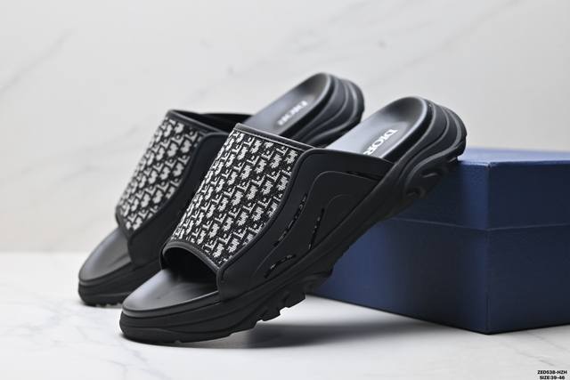 / 纯原Dior迪奥 H-Town 橡胶 Oblique印花时尚拖鞋致敬运动风格经典标识彰显Dior的高订精神 采用黑色橡胶精心制作印花鞋面 饰以同色调牛皮革细节提