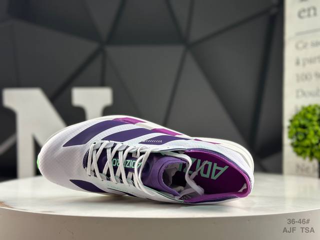 阿迪达斯 Adidas Adizero Adios Pro 4马拉松飞线贾卡轻质透气休闲运动跑步鞋采用双层透气网纱 Flywire动态飞线绑缚鞋面材质 内置Zoom小气垫装置 货号:Ir1656尺码:如图所示 Ajf Tsa
