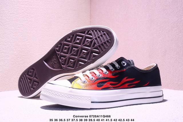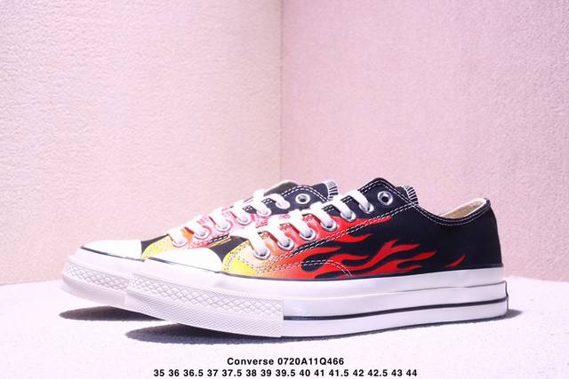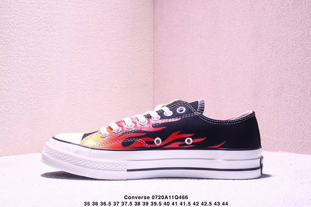 Converse 匡威经典复古火焰高帮重磅回归Converse 匡威1970S Ctas 70 Hi经典复古火焰高帮黑红拼接帆布鞋原厂亮油 双层布围条 硫化休闲帆布板鞋 该鞋以匡威极具代表性的70S为蓝本 鞋身配以鲜艳的火焰印花图案 使经典充满活力货号:165024Csize:35 36 36.5 37 37.5 38 39 39.5 40 41 41.5 42 42.5 43 44Xm0720Q466