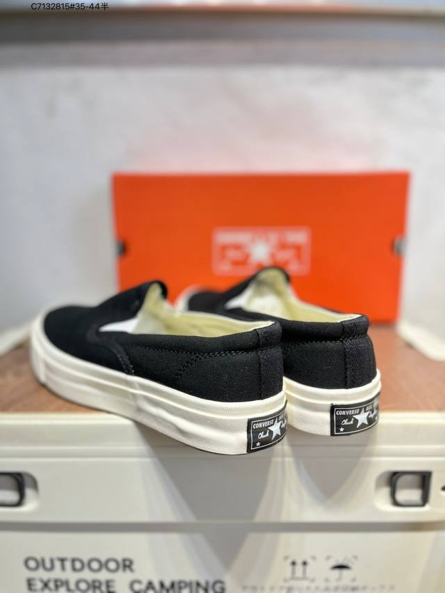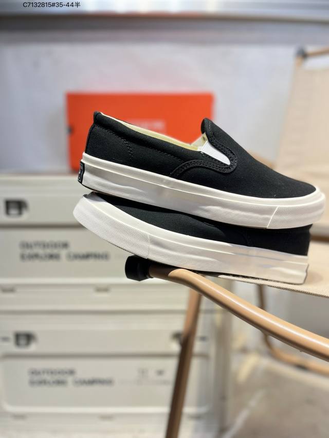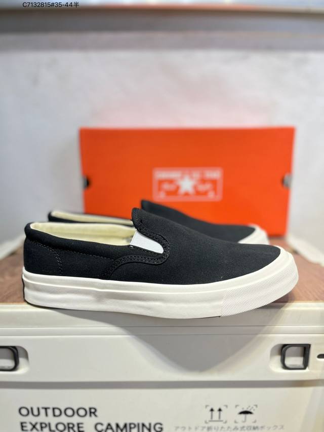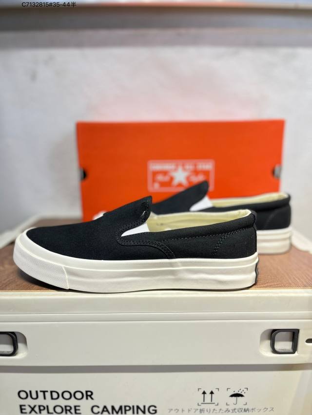 Converse 匡威 男女鞋真标硫化工艺日版限定,匡威Converse Deck Star Slip On 67 Black White 低帮帆布休闲一脚蹬懒人套运动硫化板鞋“帆布黑白” 货号: 855C C7132815#35-44半