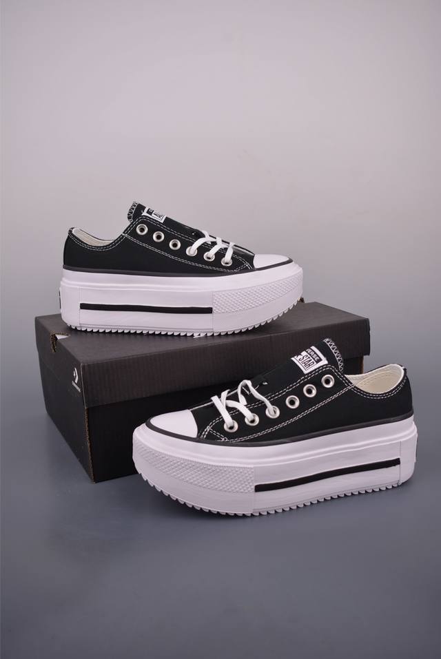 Converse All Star Liftplatform Double Stack 匡威新款 厚底增高休闲帆布鞋 全新增高系列 不增重量 轻盈增高标志性围条细节 带来全新视觉感受Cx 泡沫鞋垫 提供舒适体验 耐用的橡胶外底搭配防滑凸块 增强抓地力货号:A12975C 黑高货号:A15490C 黑低货号:A12976C 白高货号:A15491C 白低尺码:35 36 36.5 37 37.5 38 39 39.5 40 40.5 41 42 42.5 43 44