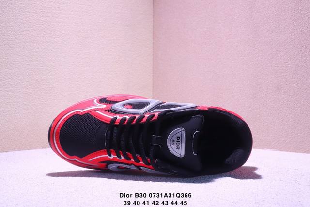 Dior迪奥B30网眼织物厚底系带休闲低帮运动鞋男女同款老爹鞋 这款 B30 Countdown 低帮运动鞋已成为 Dior 别具一格的经典新品,时尚而富有运动风范。采用煤灰色网眼织物精心制作,搭配黑色、蓝色和迪奥灰科技面料,饰以反光 Cd30 标志提升格调,富有美感。鞋舌和鞋跟处饰以银色调 Dior B30 和 Cd30 标志。轻盈的纹理效果橡胶鞋底饰以众多特色细节,内部弹力饰带打造理想的舒适穿着体验。可与各式休闲单品搭配,打造精致造型。Size:如图所示Xm0731Q366