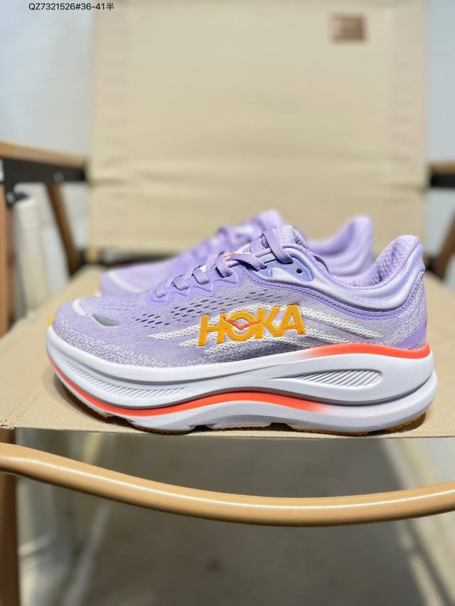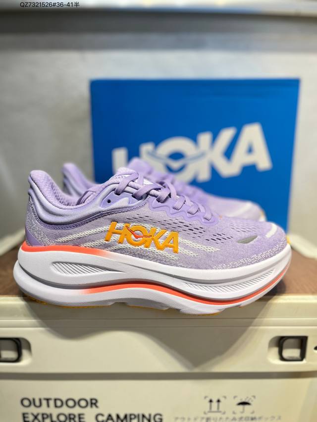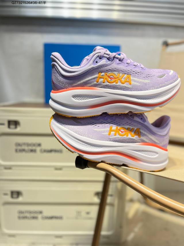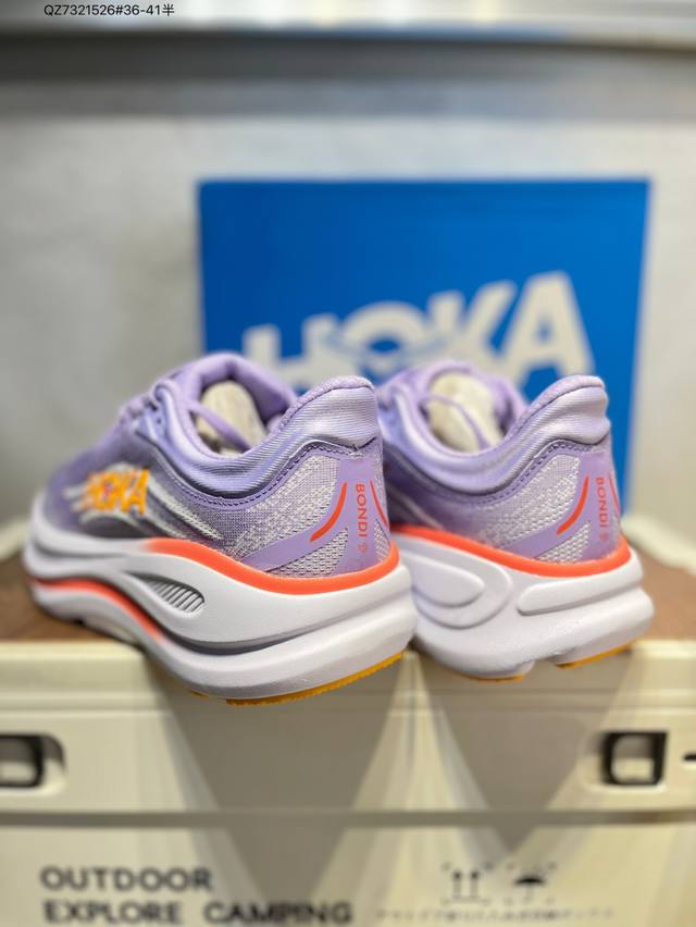Hoka One One Bondi 9 Wide 邦迪九代舒适防滑耐磨低帮休闲跑步鞋 相比常规跑鞋 Hoka One One特别研发使用性能独特的几何形跑鞋中底此种鞋底更厚、更高、回弹性也更好除了卓越的缓冲性能 它还能內各种阶段的跑者带来更具动感 更加稳定的跑步体验1162011 Qz7321526#36-41半