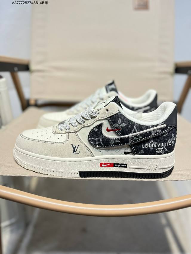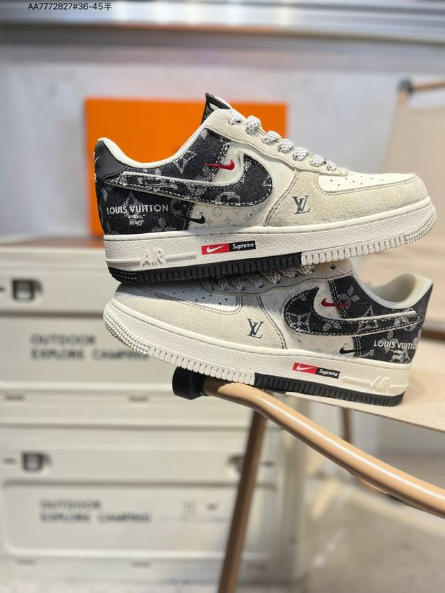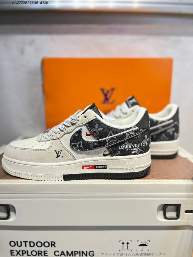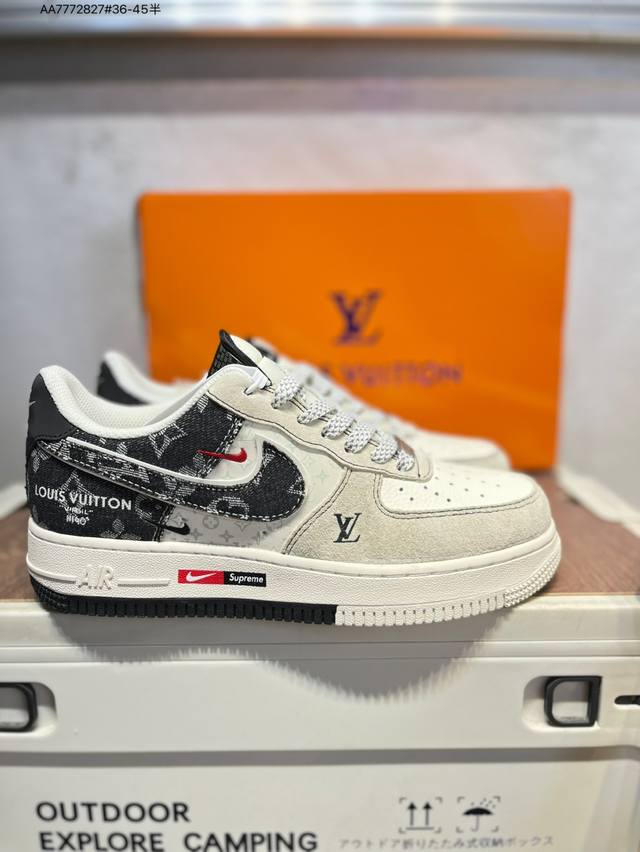 Lv X Nk Air Force 1'07 Low 空军一号低帮休闲板鞋 #定制皮料 原楦原纸板 纯正空军版型 高清洁度 内置全掌气垫Mz9588 Aa7772827#36-45半