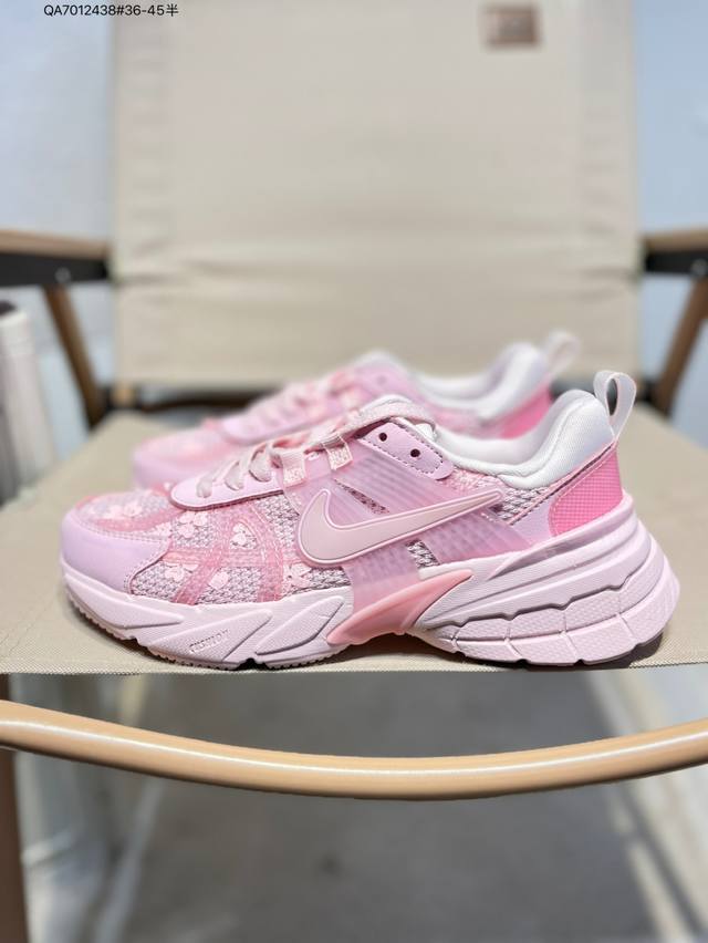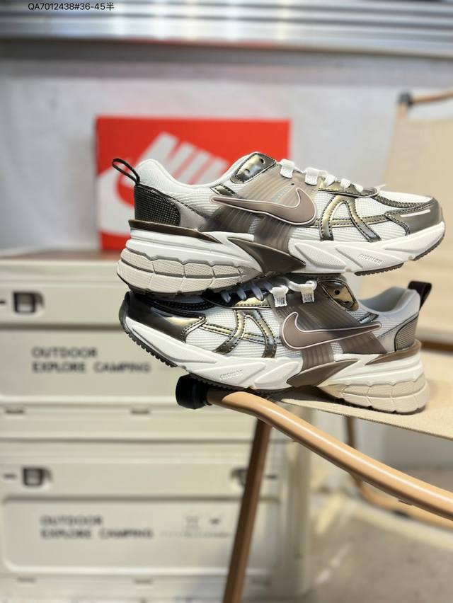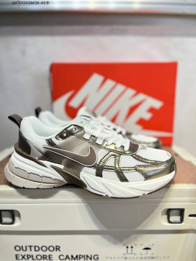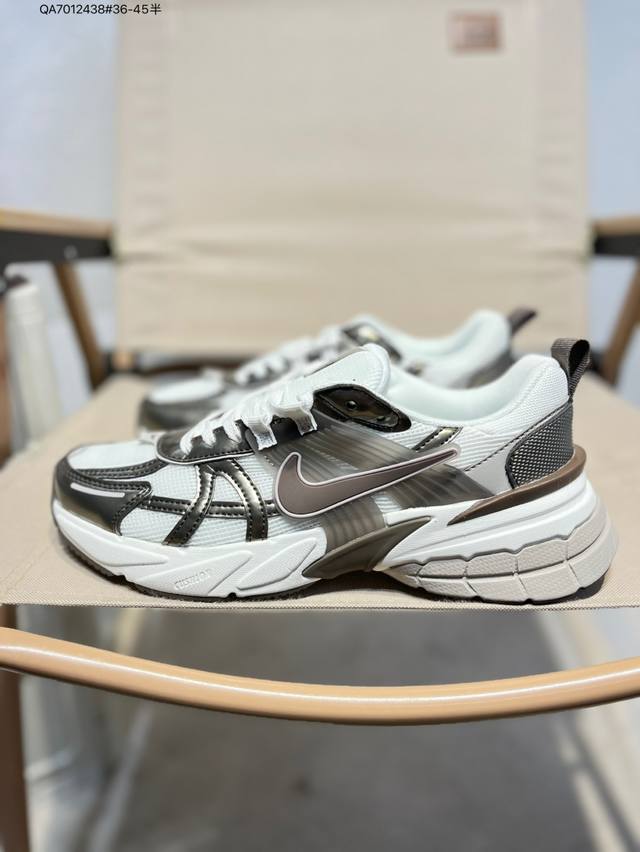 Nk V2K Runtekk 减震防滑低帮 复古老爹鞋跑步鞋 鞋款被命名为 Runtekk 设计上借鉴了 2000 年的跑鞋风格 配色上以金属银为主调 简练又有复古运动气质 材质上使用大面积网眼、皮革、Tpu 组成 支撑和透气性肯定不错 中底处由 Cushlon 泡绵打造 保证在压马路时可以提供优秀脚感 并通过一手做旧氧化效果突出复古感 中底造型很容易让大家联想到巴黎世家3Xl 增高效果同样不能忽视Hj5269 Qa7012438#36-45半