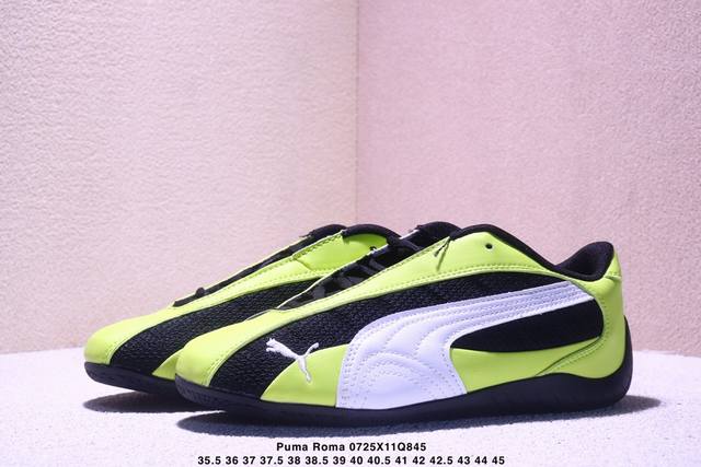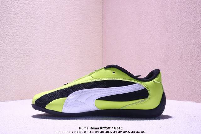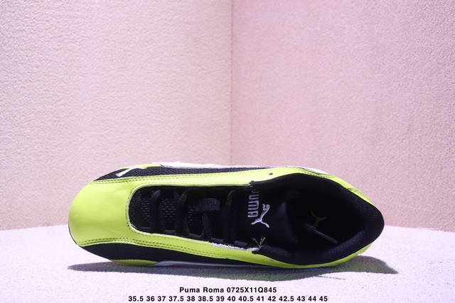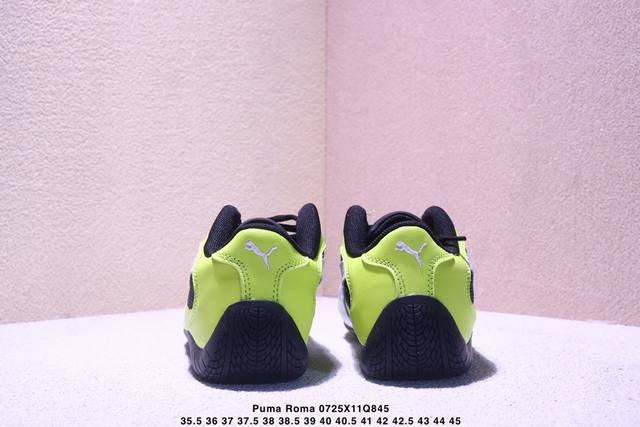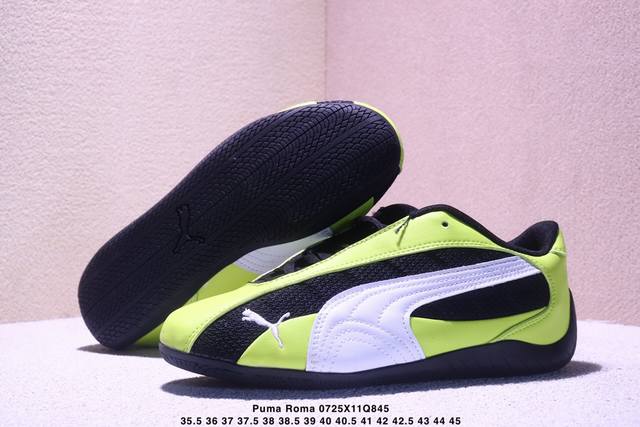 Puma Roma M Motorsport 彪马罗马阿莫尔系列低帮复古运动休闲赛车跑鞋 Yy联名系列 黑色 全球知名运动品牌Puma宝马赛车系列,融合了宝马车队的标志性配色,以趣味十足又前卫复古的设计引领潮流,将赛道精神融入街头时尚,开启前卫竞速之旅。自1978年巴伐利亚车队走上世界舞台,宝马赛车就在全球汽车制造和赛车运动领域留下了浓墨重彩的一笔。全新的两款Bmw Mms Roma与Bmw Mms Speedboat鞋款,均从宝马车型中汲取灵感。以黑或白为底色,融入经典配色,主打前卫复古风。Roma鞋款