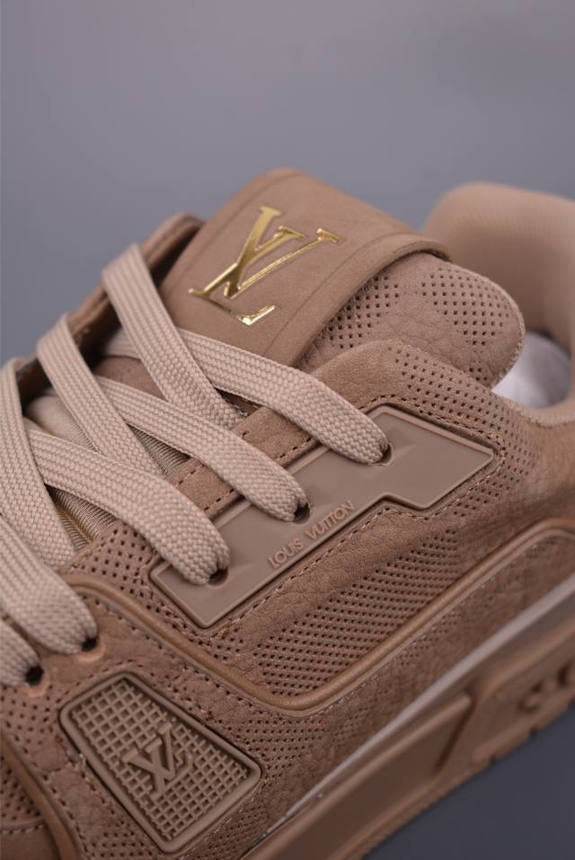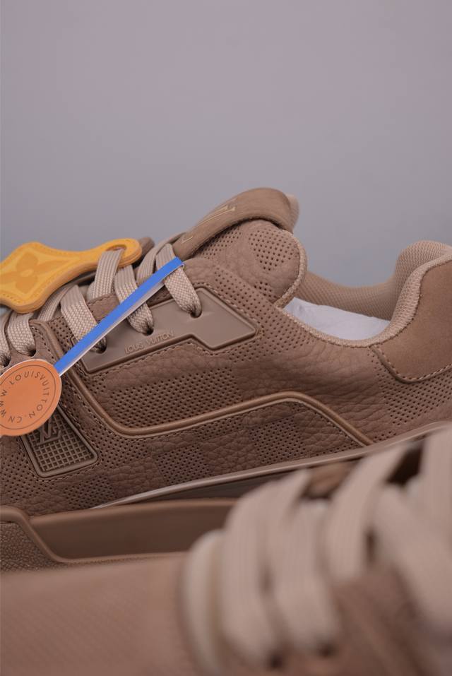 S Lv Trainer 限定联名 最新配色国内限定无售 原版购入历时近两个月开发打造经典多拼色超好看 原版完美楦型 调试了两个月 鞋面独家订制压纹粒面小牛皮大