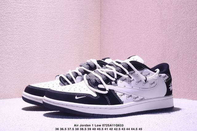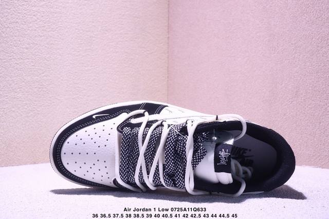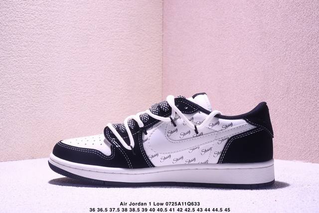 Travis Scott X Fragment Design X Jordan Air Jordan 1 Low Og Sp “斯图西联名 深灰猪八抽绳” 多方联名合作融合了Travis Scott 独特的音乐风格,藤原浩个性的设计风格以及Jordan品牌的经典元素 使其成为一双具有独特身份和价值的鞋子 清新而立体的外观加上联名标识更突出了其独特身份 这种配色方案显示出活力和时尚感 在视觉上引人注目 鞋身的质感和细腻的细节处理使其显得高端而格调十足 这款“倒钩”联名是设计与创意完美结合 融合多方的个性风格