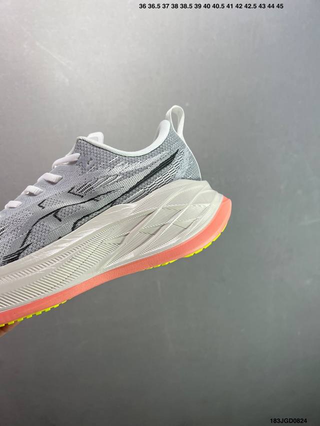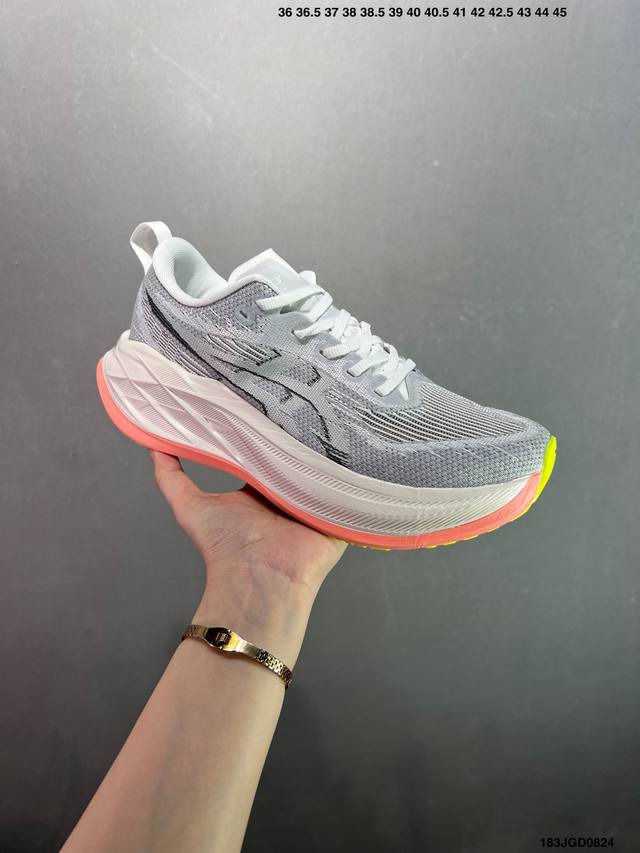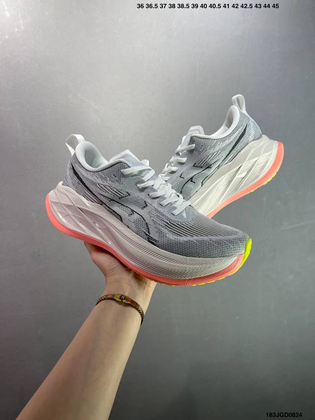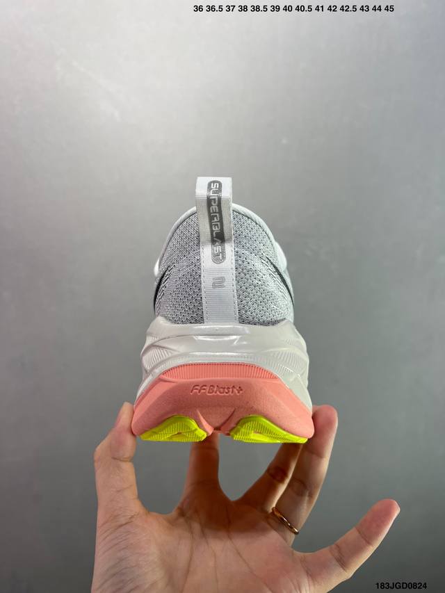 亚瑟士 Asics Superblast 2代 超顶级轻量化运动有氧慢跑鞋 高级训练鞋 厚底增高老爹鞋,缓震,回弹,轻量,透气,舒适,跑步鞋,长距离,竞速,跑鞋,Asics Superblast 2代跑鞋,该鞋采用顶级非碳泡棉组合,具有轻量、快速回馈的动态表现,适合长距离训练。虽然没有碳板,但对于追求轻量化和透气体验的跑者来说,是一个不错的选择。鞋面采用工程针织网眼设计,透气性良好,鞋底防滑性能出色。尺码选择要根据个人脚型和跑步需求进行,不要选择偏大的尺码。总体而言,Asics Superblast 2代