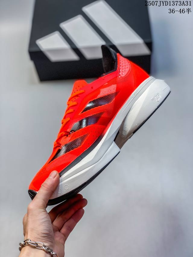 公司级全掌碳板 Adidas阿迪达斯Adidas Adizero Adios Pro 3 耐磨减震专业跑步鞋 加碳板 男女士运动鞋 北京马拉松40周年限定。冲向目标,一路向前,不断挑战和突破自我。无论是平时训练还是马拉松,让这款Adidas跑步鞋伴你畅快开跑。兼具舒适性和结构感,搭载Lightstrike科技,为步伐注入活力。